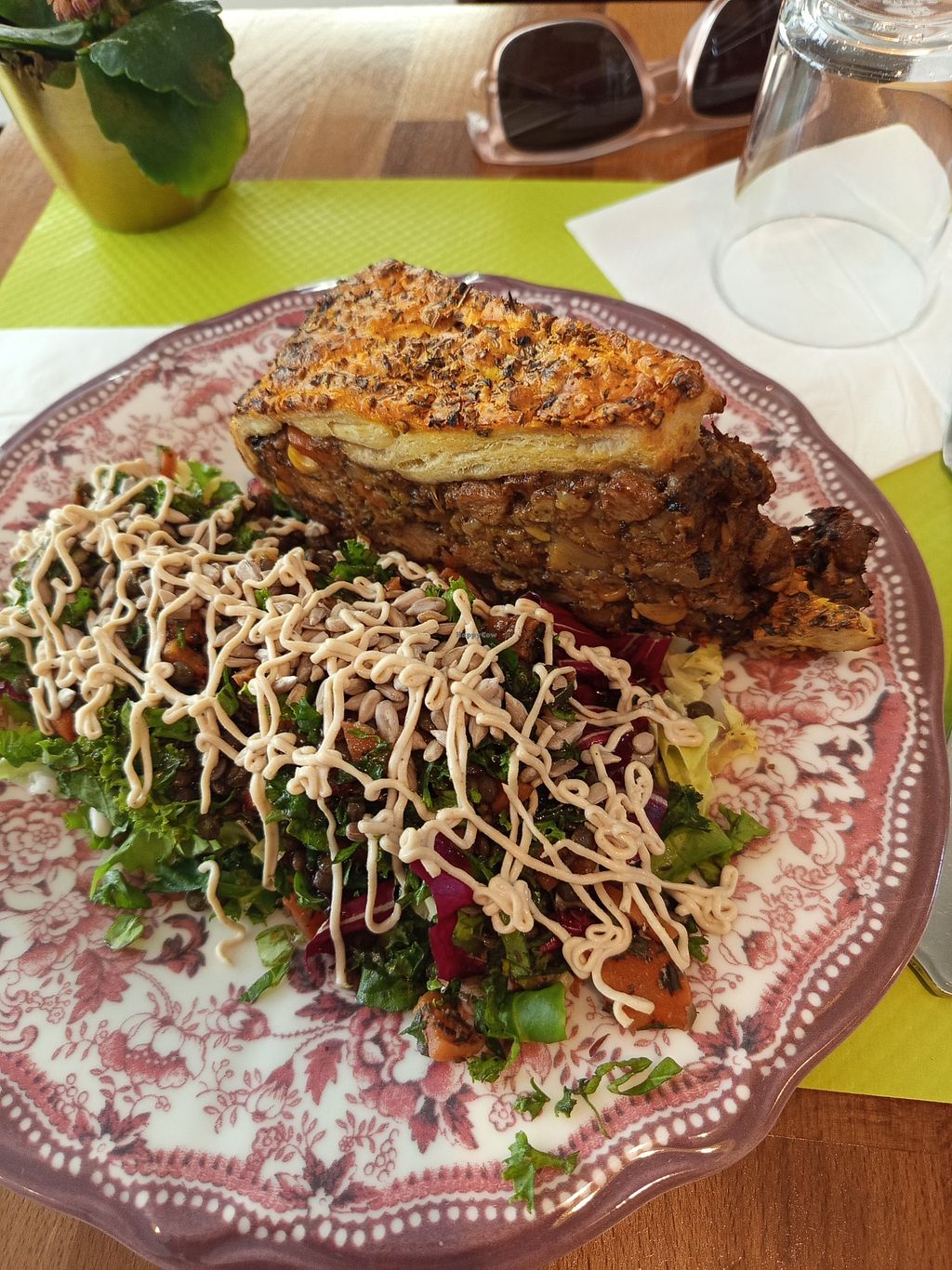 Read moreMalheureusement j'ai trouvé que mon assiette était très peu garnie. La part de tourte aurait pu largement être un tiers plus grande, et la salade l'accompagnant était petite.