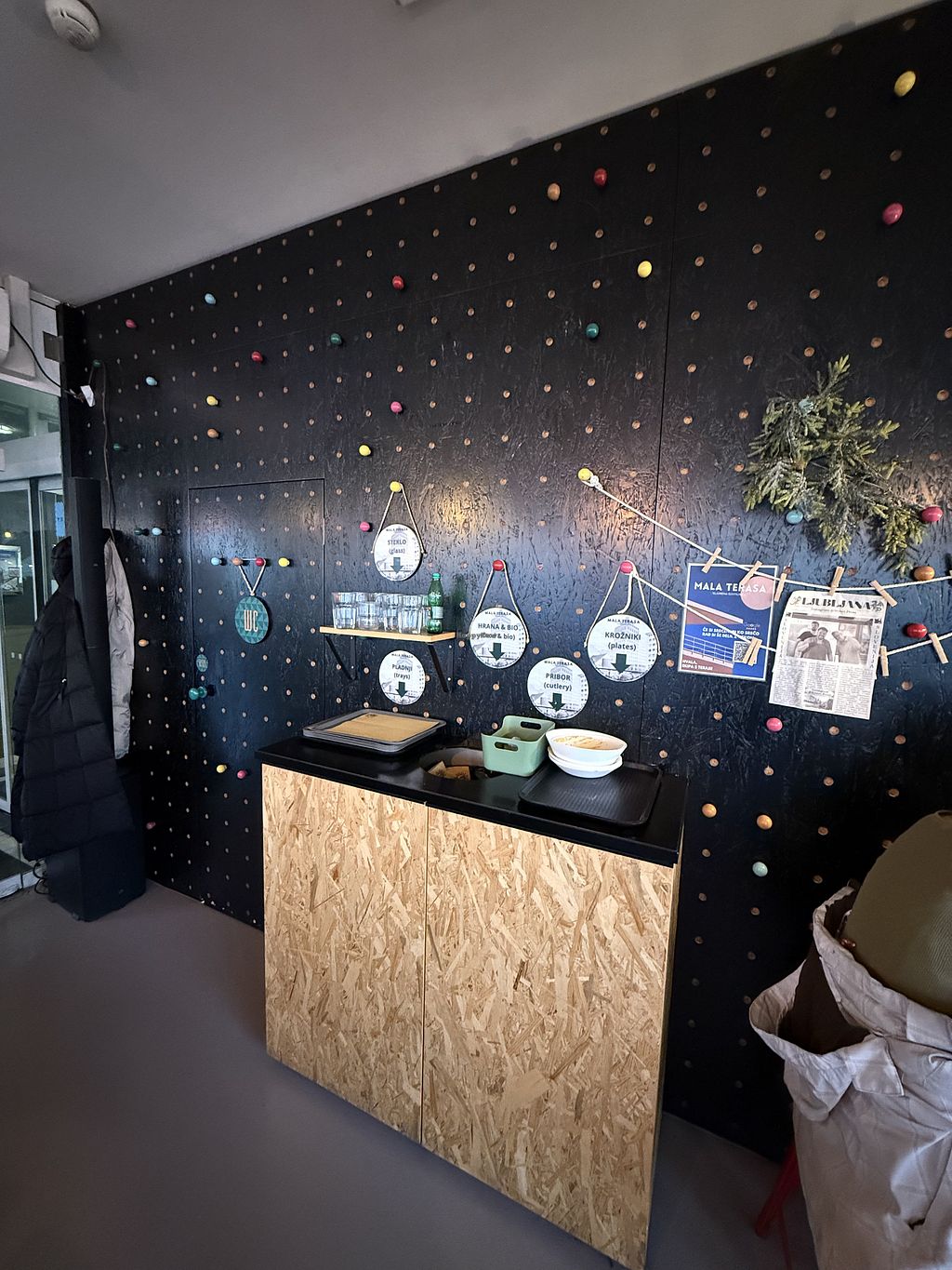 Serves meat, vegan options available. Rooftop restaurant offering daily lunches and evening dining with a view of the city. The menu features several vegan-friendly base dishes that are clearly defined by their ingredients. Vegan options include "Divji riž" (wild rice with sautéed vegetable cubes and salad), a vegetable tortilla wrap with house sauces, and "Solatna skleda" (mixed salad bowl with roasted chickpeas and basil dressing). Daily soups are frequently vegan, such as sweet potato soup or roasted zucchini soup with tarragon. Evening menus include options like oyster mushroom spread. Open Mon-Fri 11:00-15:00, Sat 18:00-23:00. Closed Sun.