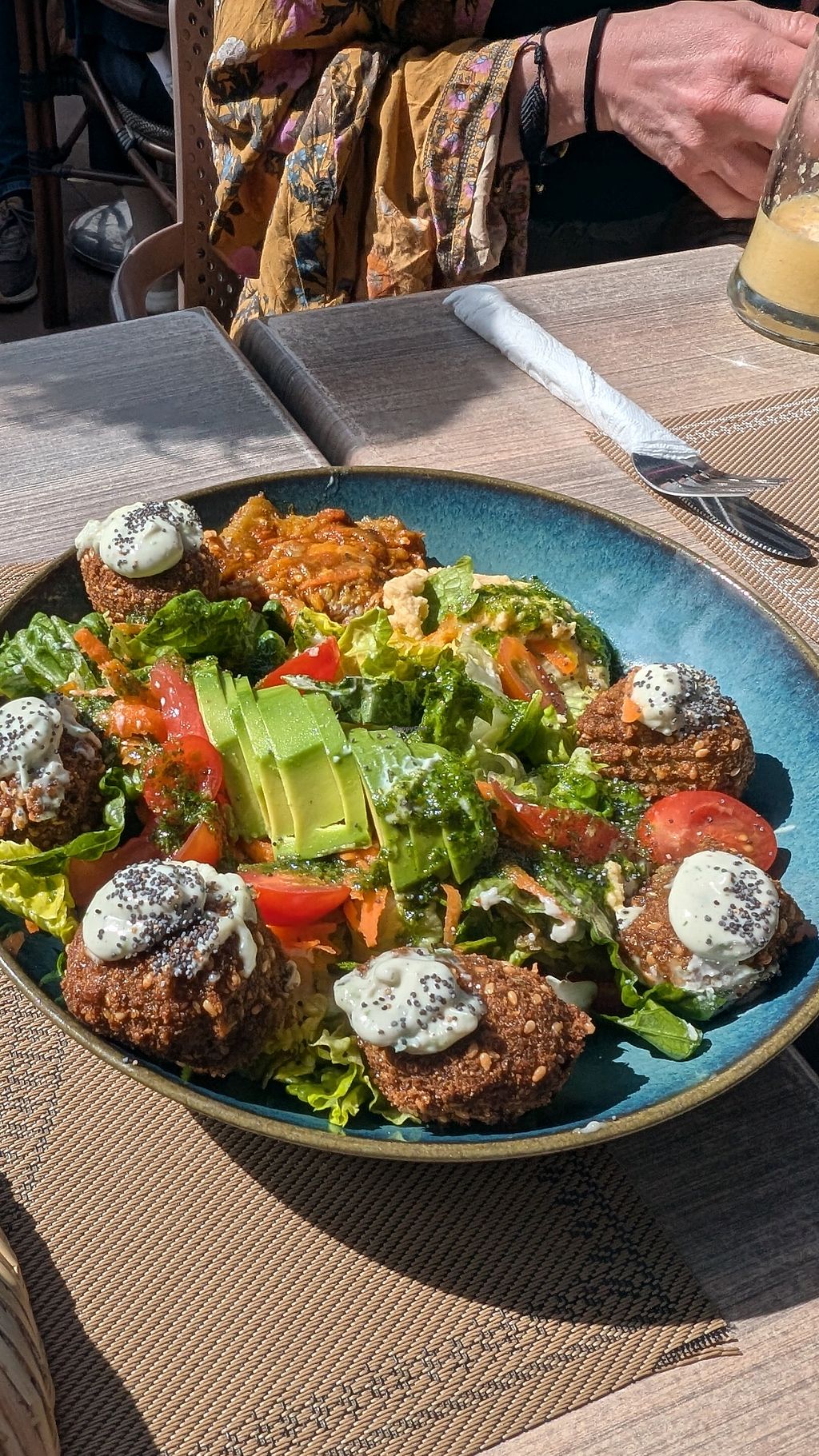 There were many vegan options and also traditional food like couscous. The falafel and hummus was very good.