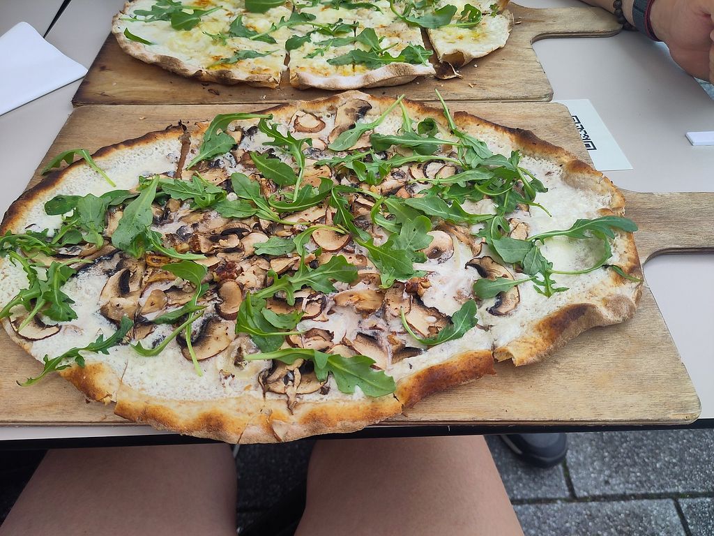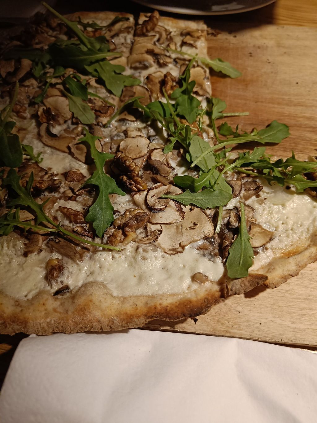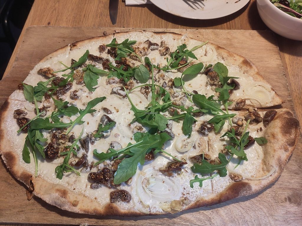 Tarte flambée du moment sucrée: Quetsche, crumble-cannelle, sucre glac…