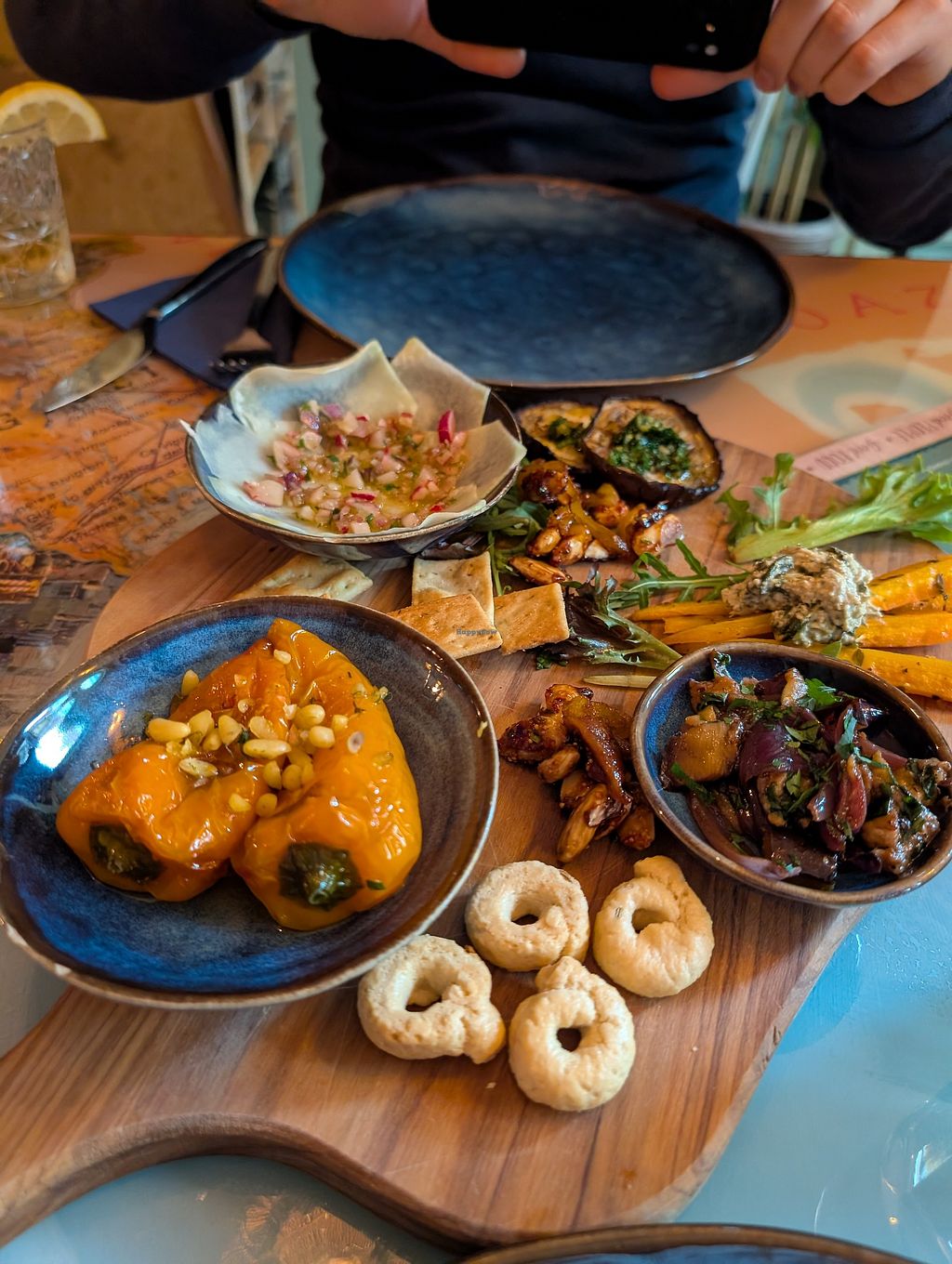 Read moreVoorgerecht was heerlijk, salade, bruschetta, olijvenpaprika mix, een smeersel met toastjes en spitskool met noten en gedroogde tuinbonen.