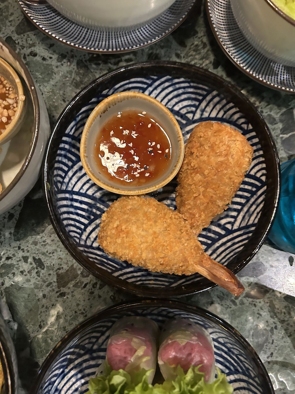 Delicious, especially the vegan shrimps. Many different small dishes, perfect to share.