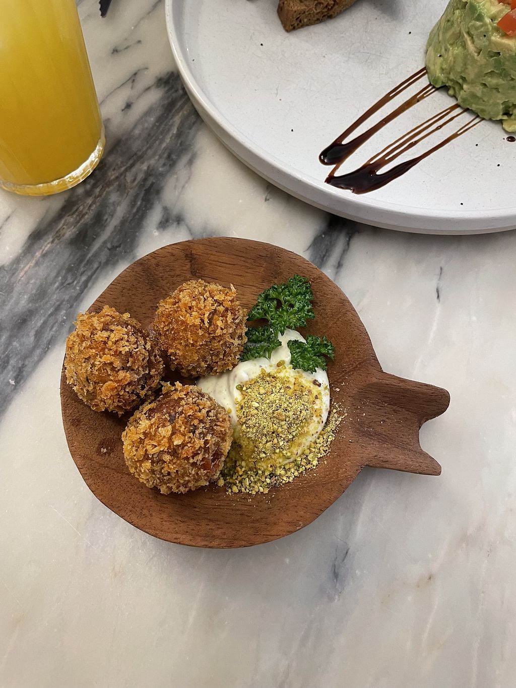 Great staff, good food. We had the sautéed mushrooms with beet hummus and the cashew cheese with cherry tomatoes and a latte. Everything tasted great and it was really filling. Oat milk latte was nice and the vegan pastel de nata amazing.