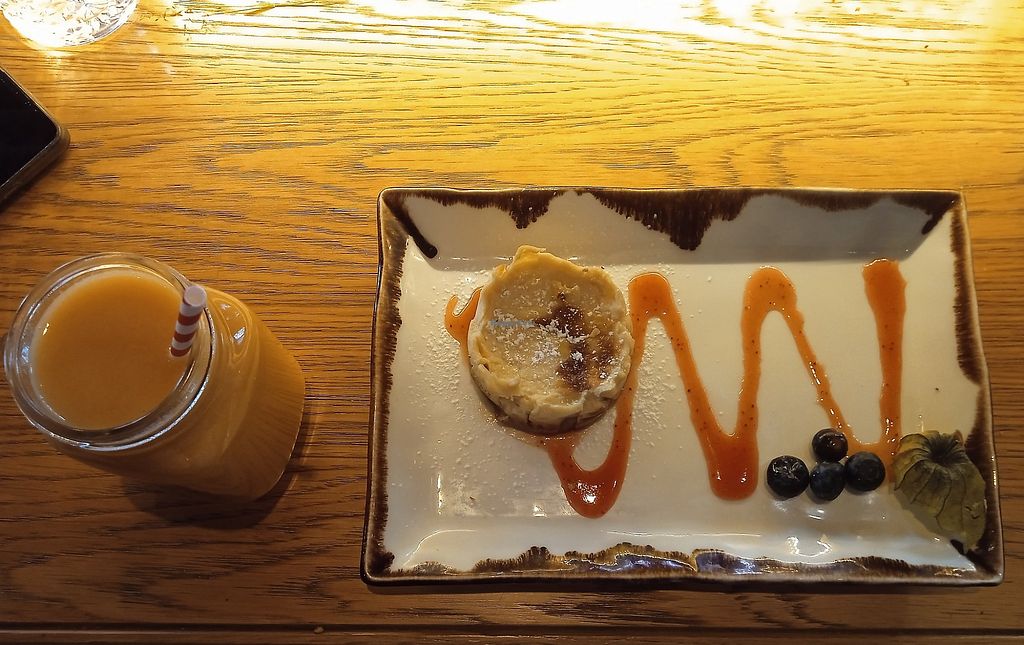Como la mitad de la carta es vegana, está rico y tiene buen precio. El lugar es muy bonito