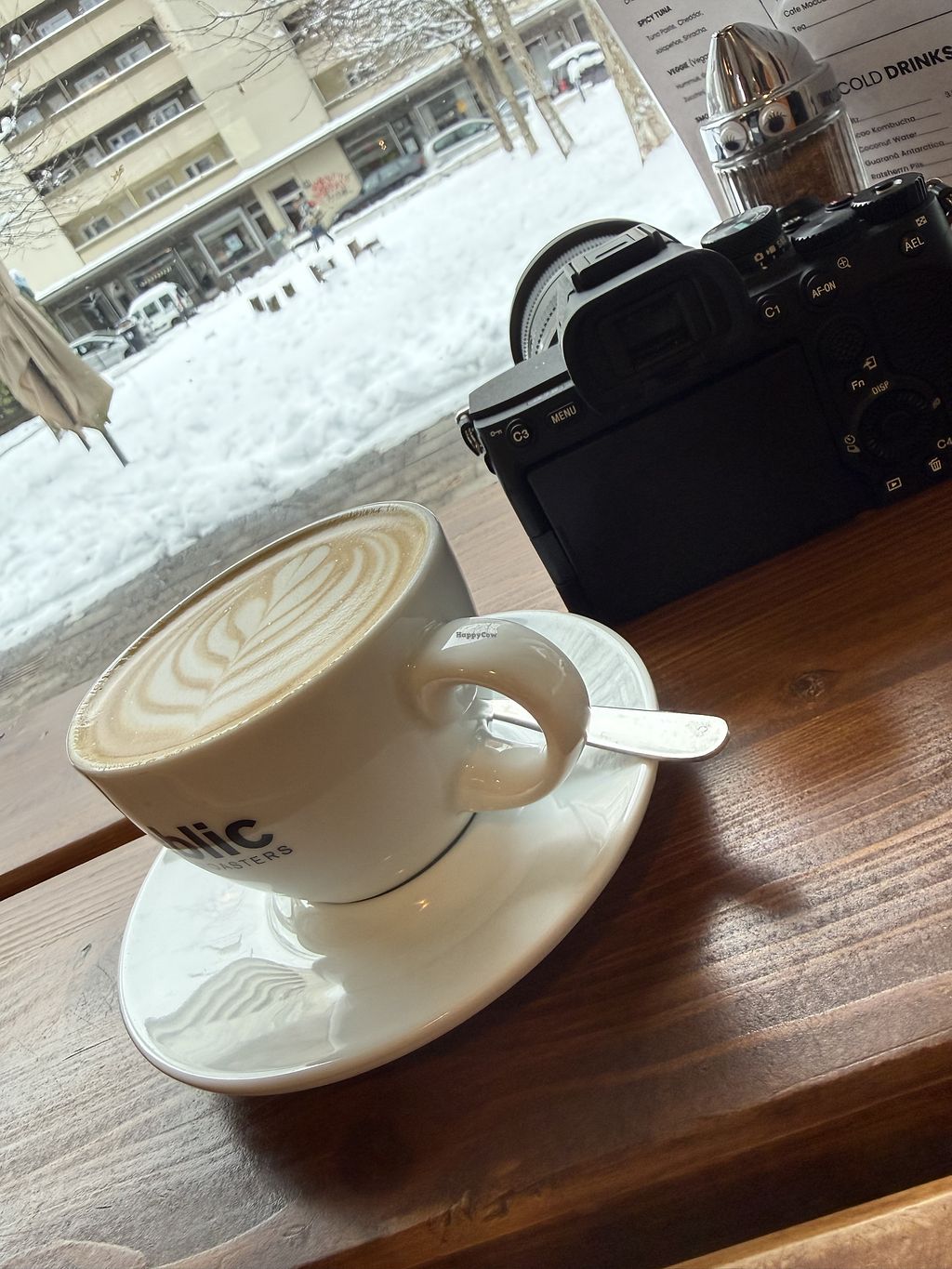 A wide variety of hot & cold drinks, oat milk is available. When I got there, they had a vegan croissant as an option and a vegan grilled sandwich with hummus and veggies. It is very beautiful, cozy and the staff is extremely friendly