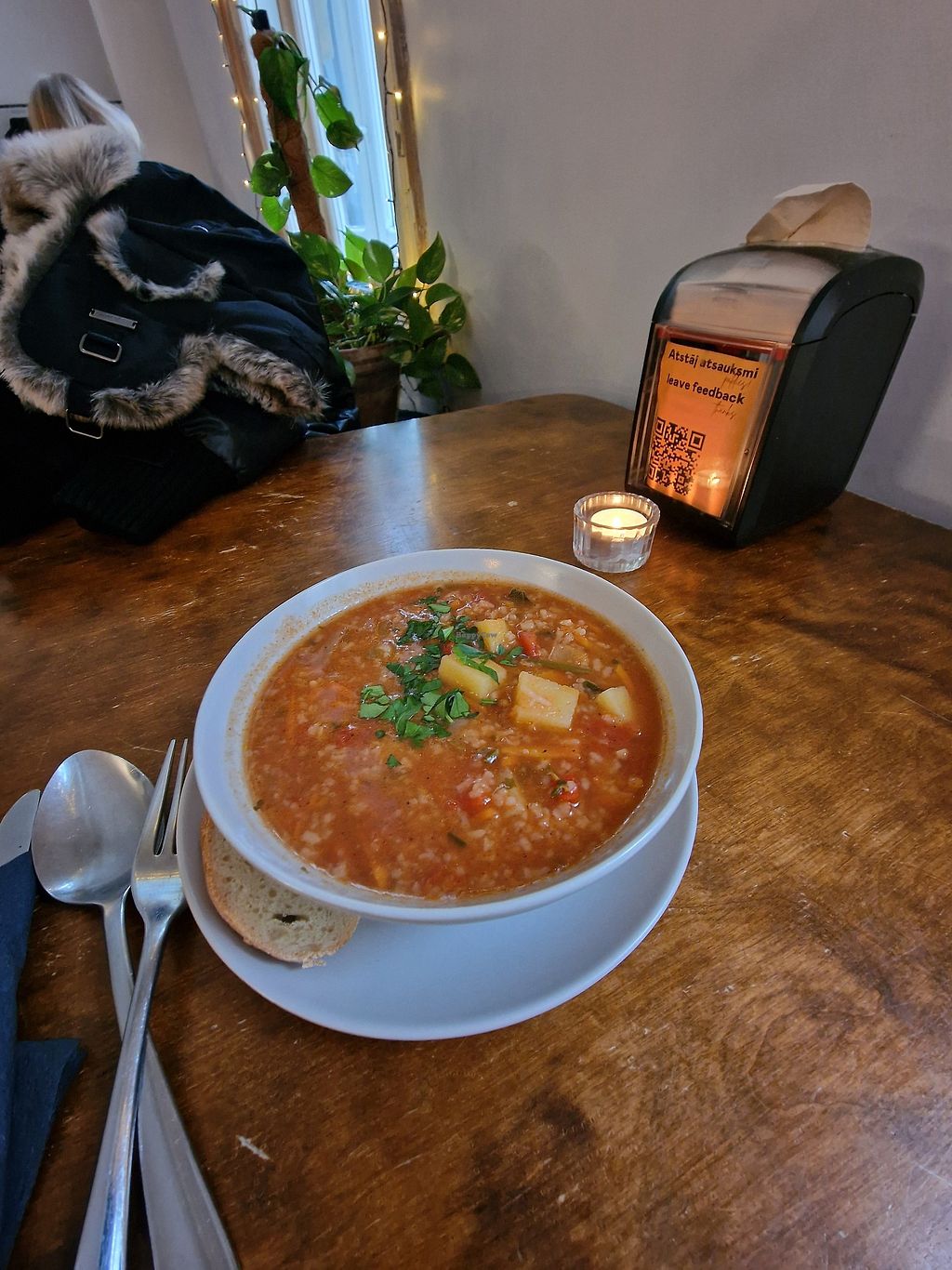 This is the first place I recommend anyone who is vegan in Latvia, there are a lot of tasty options to choose from, a lot of delicious pastries and just a great atmosphere.
