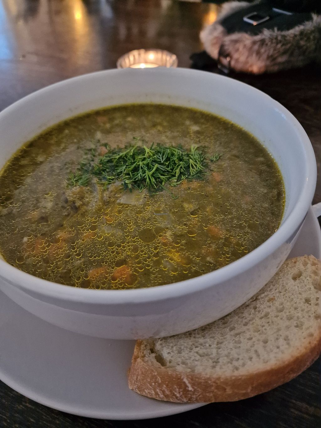 The food we had (two different types of soup and potatoes) was excellent, really substantial with great depth of flavour, proper nourishment and comfort food.