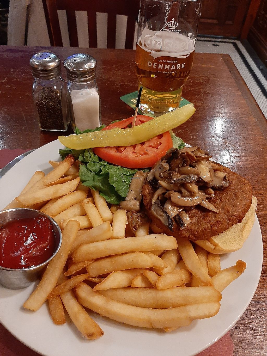 Serves meat, vegan options available. Irish pub offering vegan choices such as Beyond burger, Irish vegetable curry, and curry sauce fries. Also features an extensive selection of beer, wine, and whisky. Open Mon 9:00am-4:00am, Tue-Sat 10:30am-4:00am, Sun 9:30am-4:00am.
