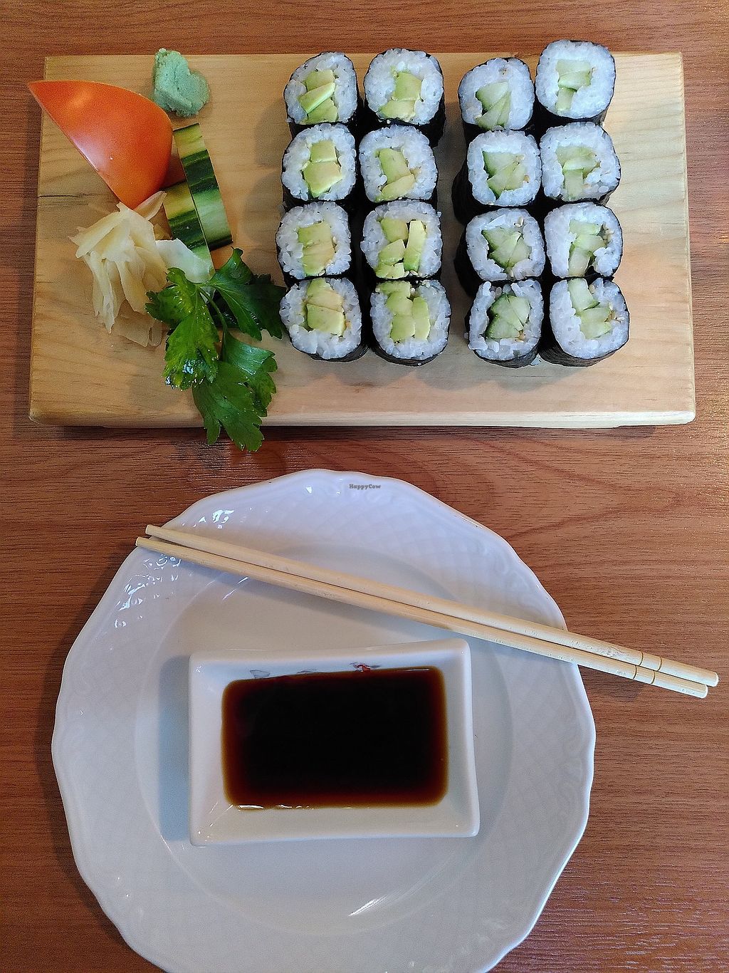 Ovo Japanese Beer/Wine Take-out Asian Honey Non-veg Serves meat, vegan options available. Sushi bar with some vegan options, including inari tofu nigiri, kampiyo maki, avocado maki, oshinko maki, kappa maki, and edamame. Open Tue-Sun 12:00-14:30, 18:00-22:30. Closed Mon. More