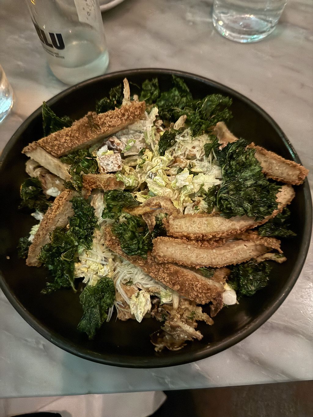 I was craving some veggies so this Caesar salad with vegan chicken hit the spot. Delicious!