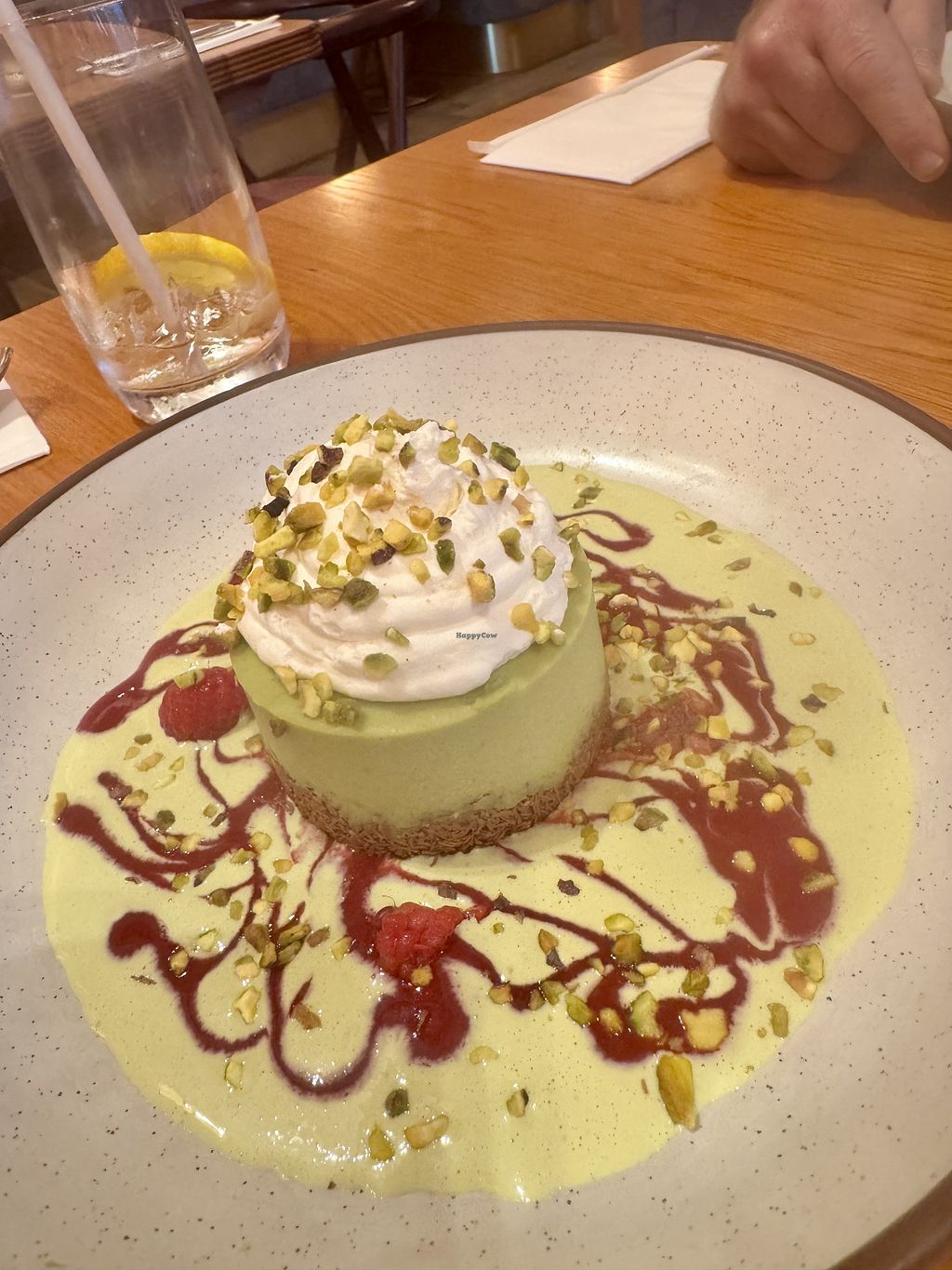 Pros: Service & Ambience, Beautiful Menu, Pistachio Cheesecake!!