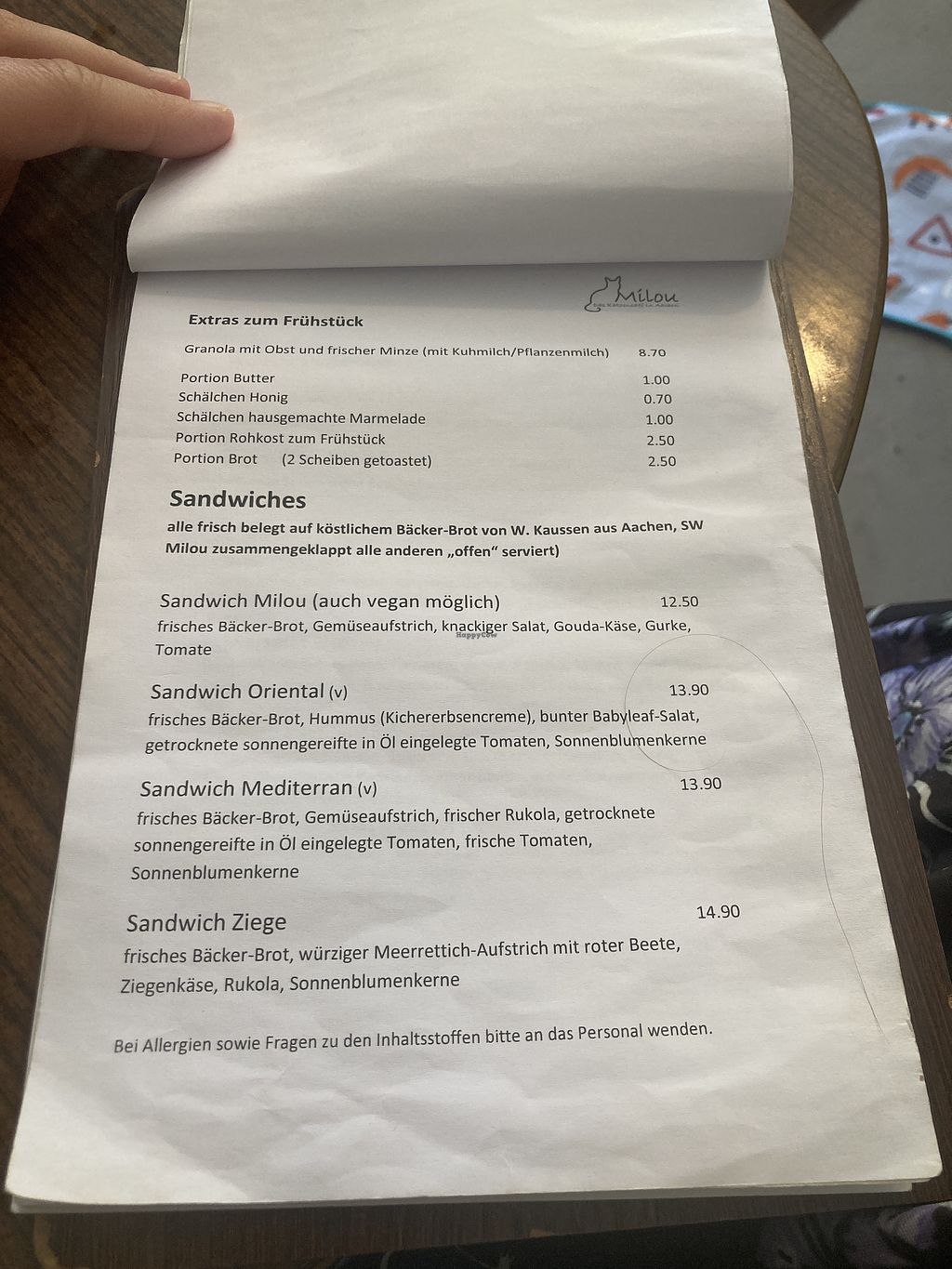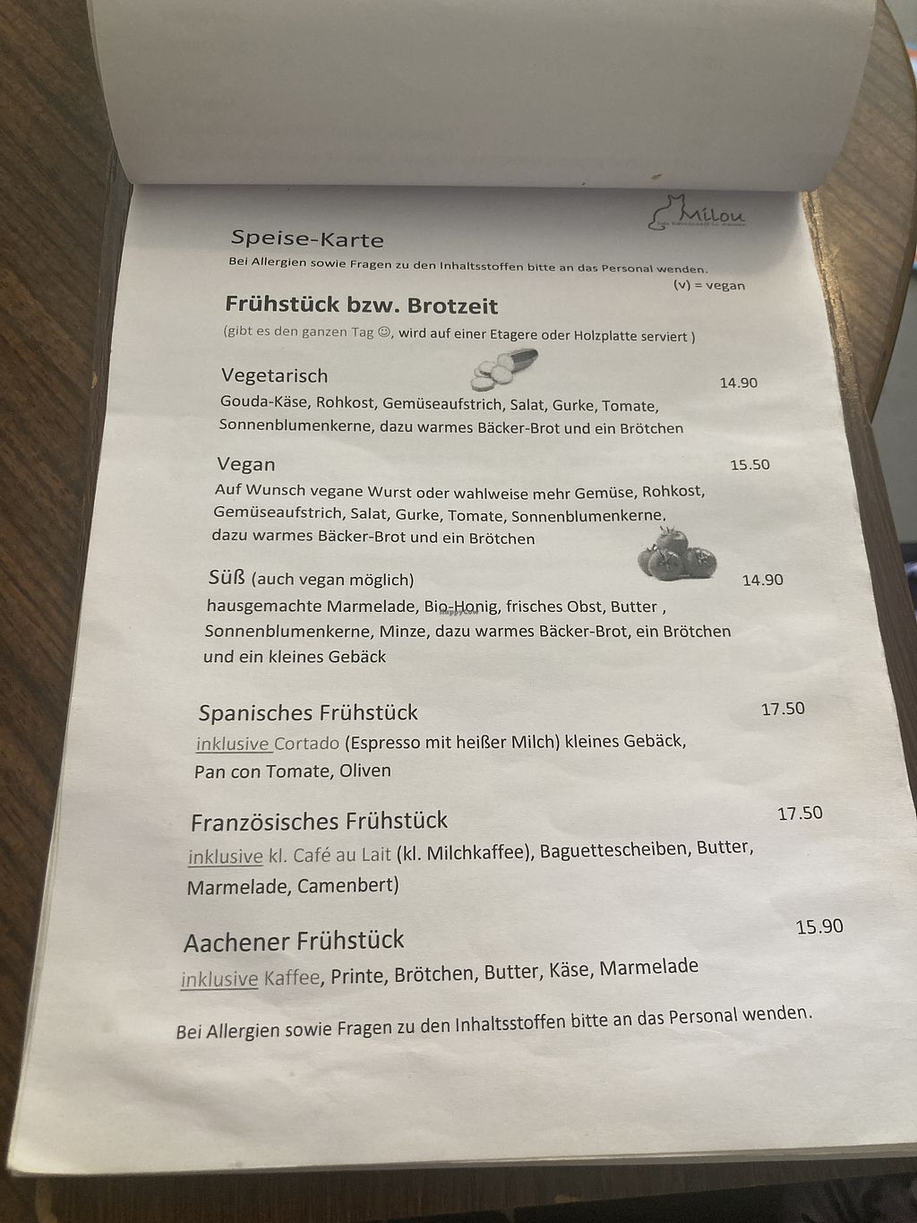 I had lunch at Milou and very much enjoyed my visit. I had a latte with soy milk and the sandwich with vegan cold cut instead of cheese. I ate at the cafe with a couple of omnis whom enjoyed the brownie (non-vegan). I would give the food alone a 4/5, but it was the cats and the relaxed atmosphere that made the over-all experience a 5/5 for me.