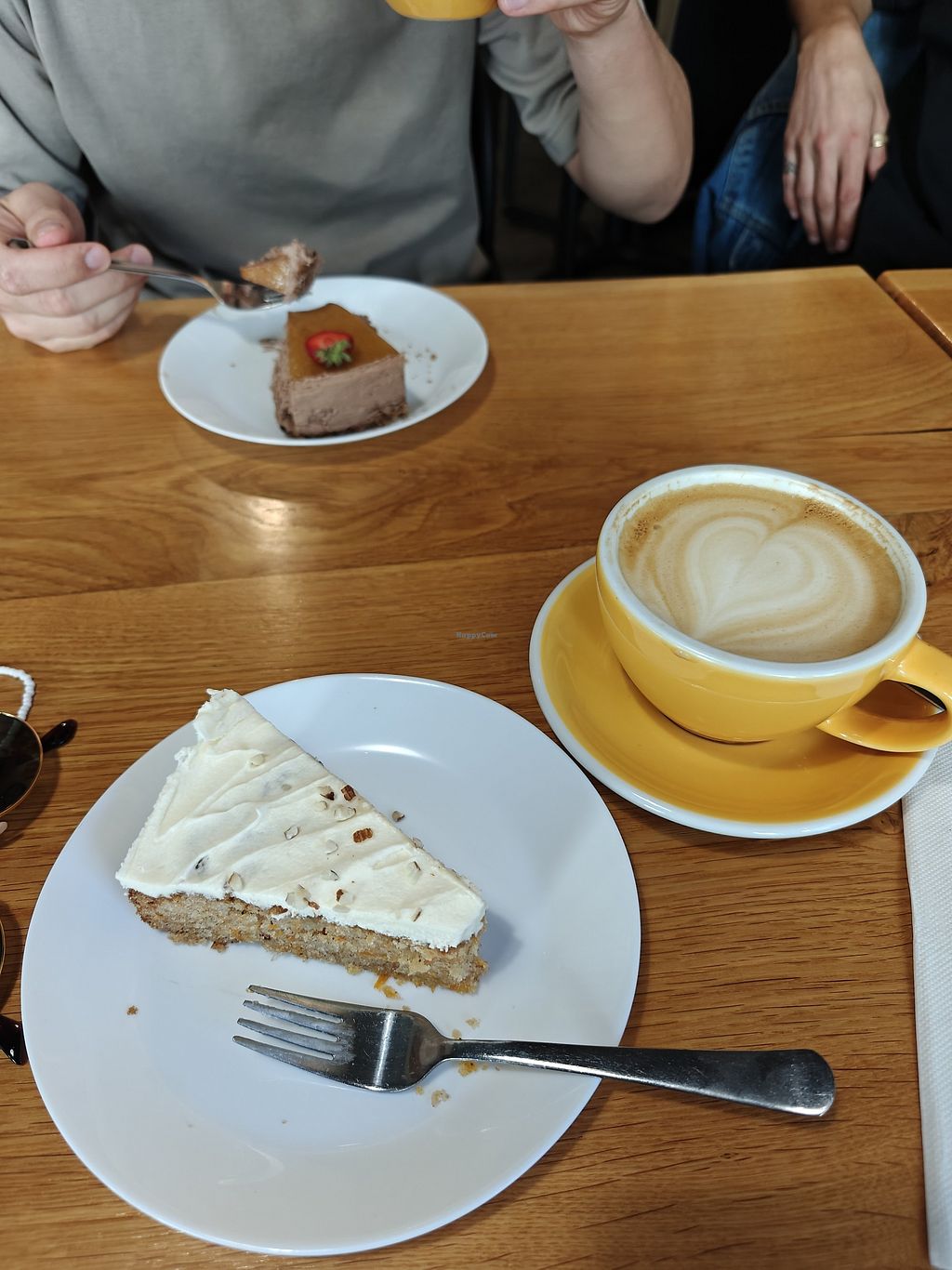 We tried two different quiches and and two cakes. Especially the salty pies were delicious, the other with vegan ham and bell pepper and the other with smoked carrot lox. This was a happy surprise for us, as it's rare to find a nice vegan quiche in cafes. The cakes were nice as well! A cozy small place with good service, highly recommended to visit!