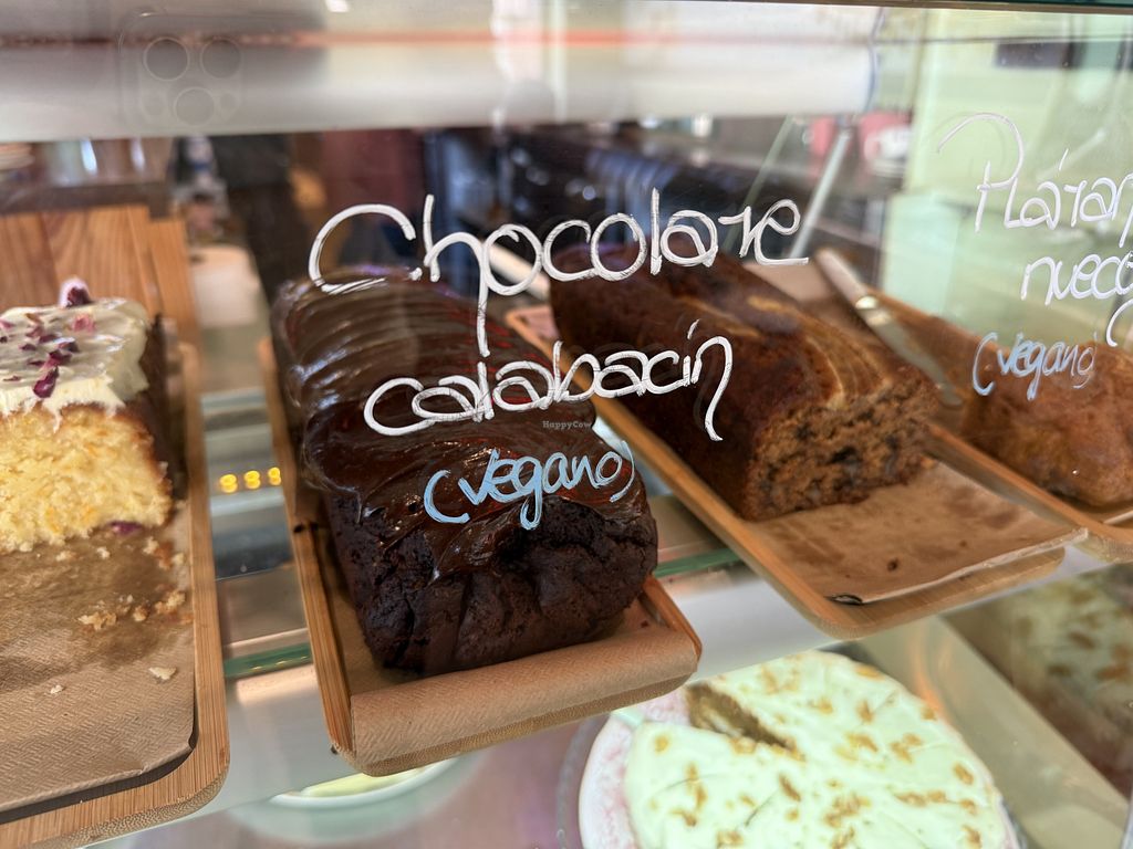 Tiene varias opciones veganas. Entre ellas las tostadas con un pan muy rico y varios tipos de bizcochos veganos (naranja y chocolate; calabacĂn y chocolate; zanahoria y banana bread). Hay mucha gente por lo que ideal es reservar para no estar esperando mucho tiempo.