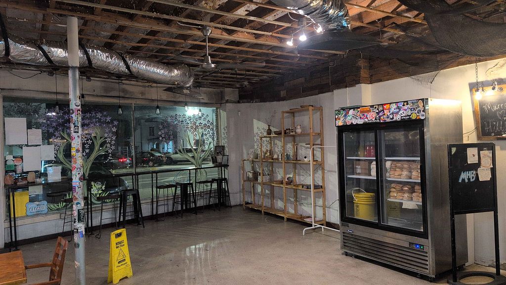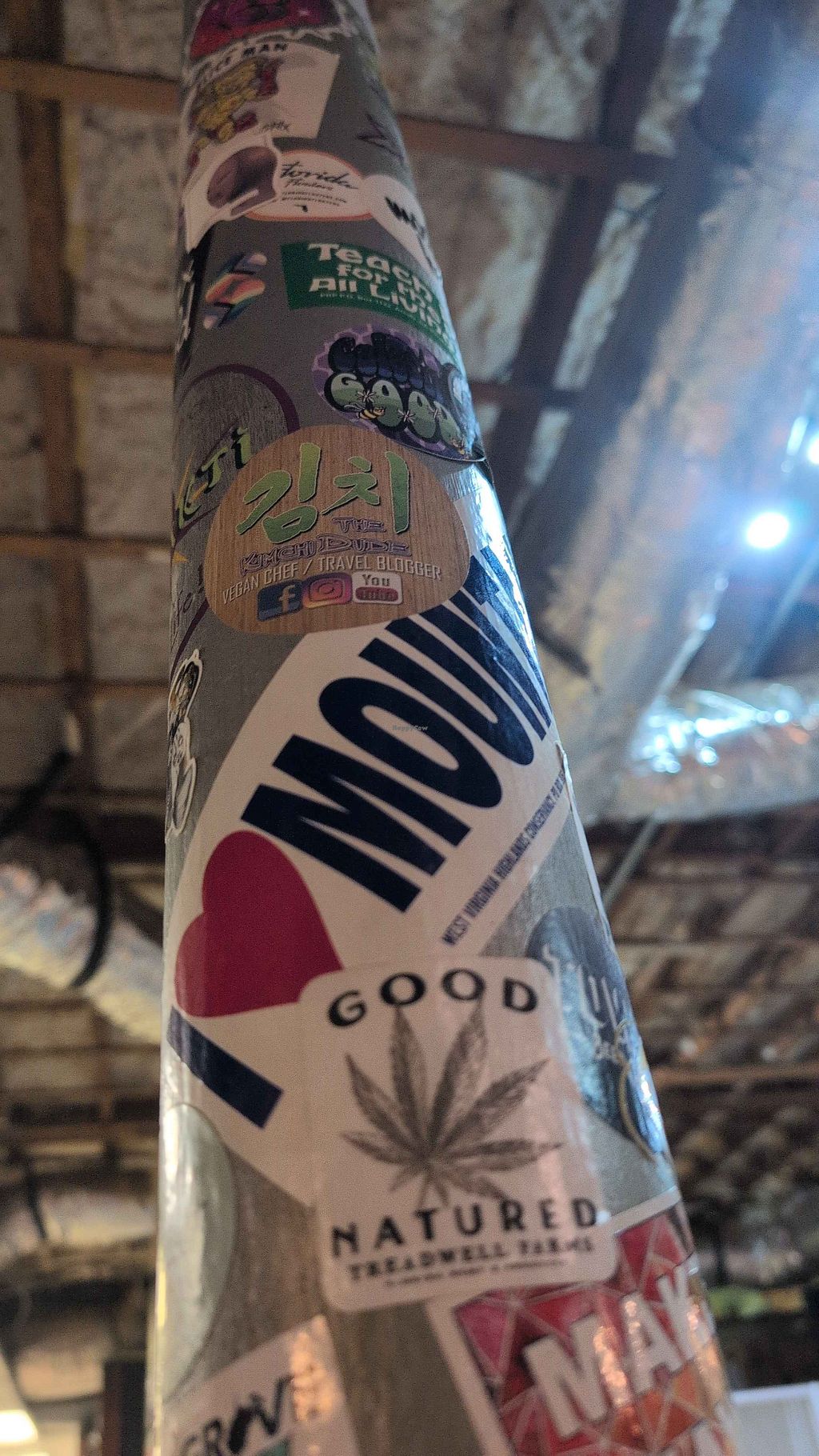 The front has a celebration of the colors of the rainbow flag. Which is good, because rainbows are neat. The inside is overall nice. With decent seating, a hook and ring game that you won't win, interesting and fun stickers on the poles, and warm lighting. But the ceiling looks like you're walking through a construction site, and the floor at least when wet, is a little sticky. I don't believe that is the owner's choice however, as it seems extremely expensive to remodel either of those. So it can't really be held against them, and I hope they'll be able to freshen up both one day.