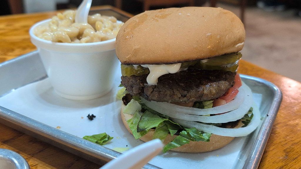 Their burgers are delicious. I asked for the house burger patty on my Smokestack burger combo and I have no regrets about choosing it over their regular meat-substitute option (which I believe was Impossible or Beyond). Their wings are great, too, probably the best vegan wings I've had in a restaurant. They're even served on bamboo chute "bones" for authenticity. The cookies were great as well, a little chewy but a little crispy at the same time.