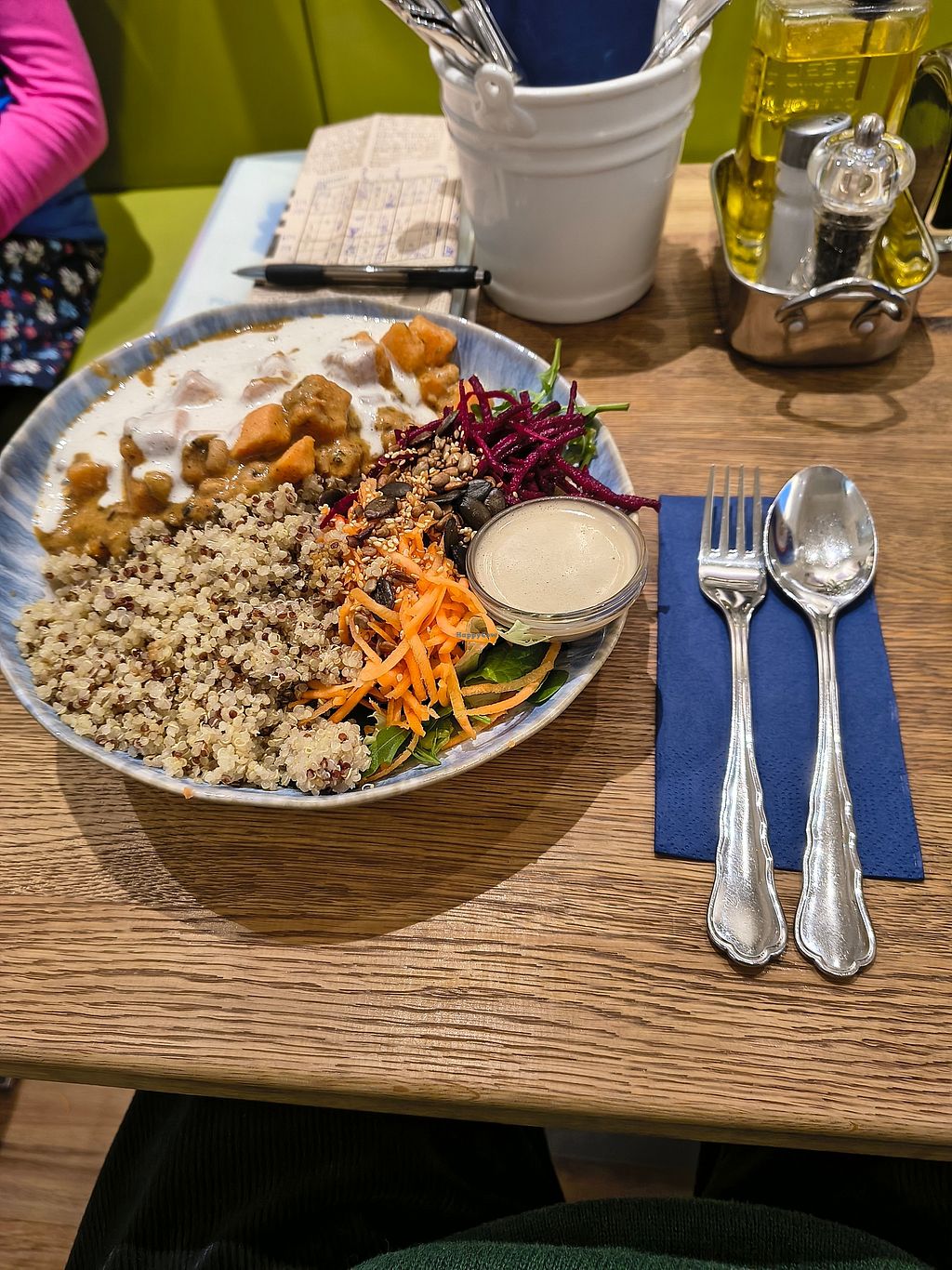 Read moreI visited my secret garden on a Tuesday and I chose the dish of the day: a creamy peanut curry with vegetables and rice and a salad on the side. The curry sauce was very delicious and it was served with a lot of vegetables. Normally I am not a big fan of side salads because it's often dry lettuce with some cucumber for instance. But this salad was simple but so good! The dressing, based on Tahini, is amazing.