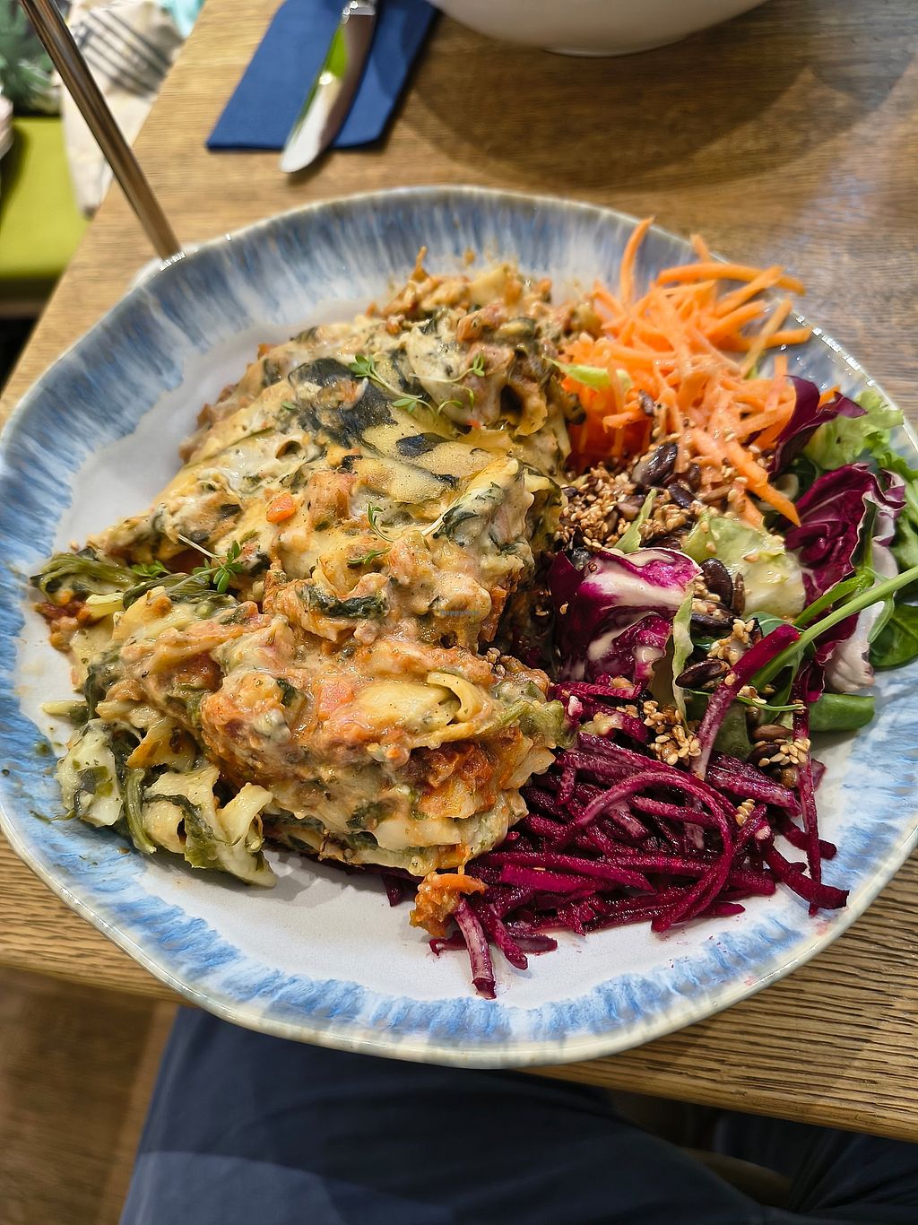 I visited this cafe a second time on a Thursday to try an other dish of the day: vegan moussaka. The moussaka was delicious. Maybe a little less salad and more moussaka would be better, but nonetheless I liked the dish.