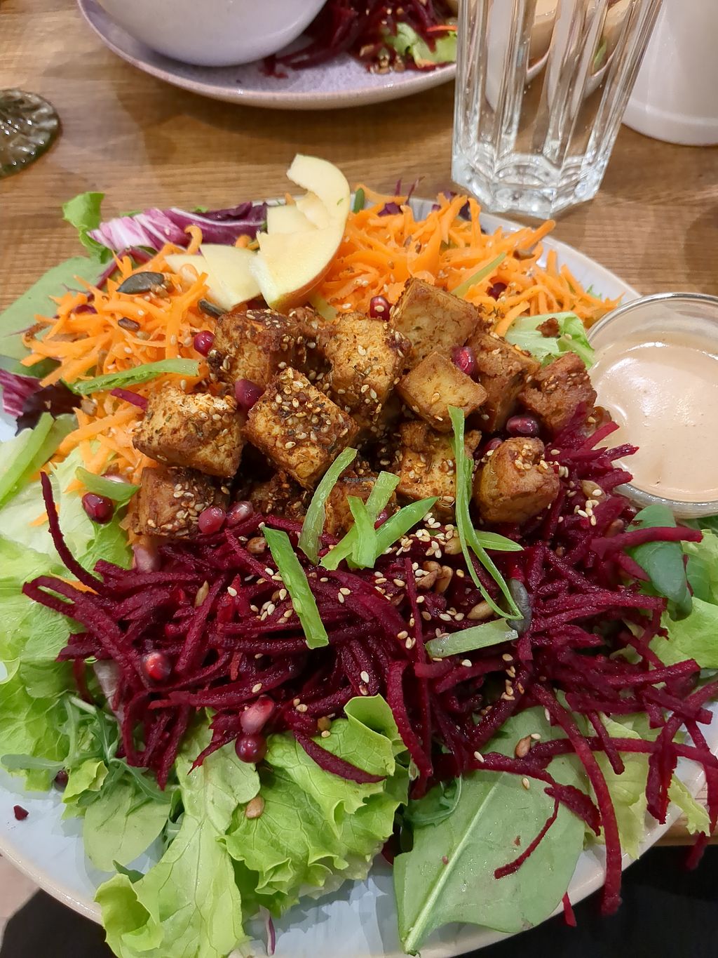 Read moreWe took the secret garden salad (very big plate with a tons of salad!) and the indian tal. I don't remember the plates of the first day. Anyway they were delicious. maybe the prices are a little high, but in line with the rest of the restaurants. For two dishes and water we spent 35 euros. The first day the gave me stll water in a bottle, the day after they gave me tap water (much better). I seldom give 5 star!!