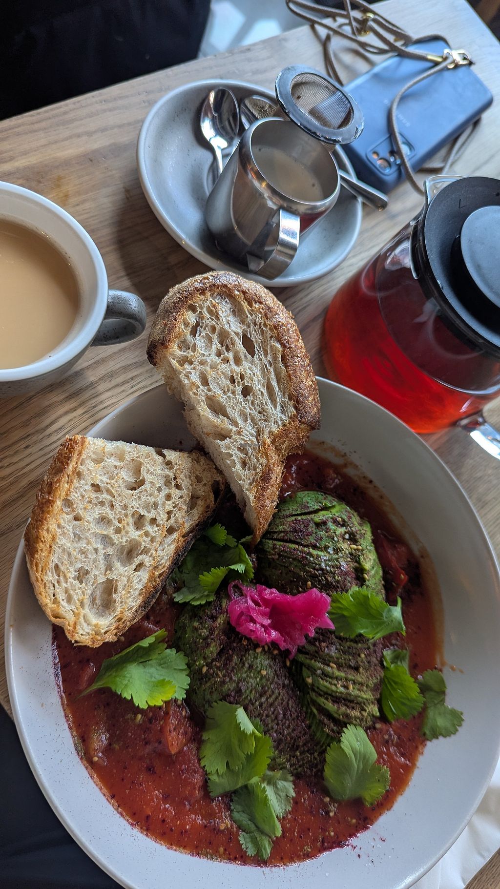 The food and drinks are tasty, but there are few vegan options and they are not very interesting/nutritious. I had a vegan shakshuka which was basically just tomatoes, bell pepper and avocado. Big plus for pea milk for drinks.