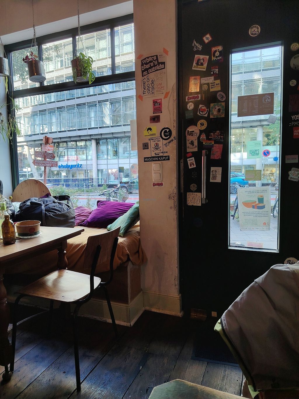 Für Veganer ein Paradies denn alles ist vegan. Der Hummus Wrap jedesmal ein Genuss und die Einrichtung genau passend.
