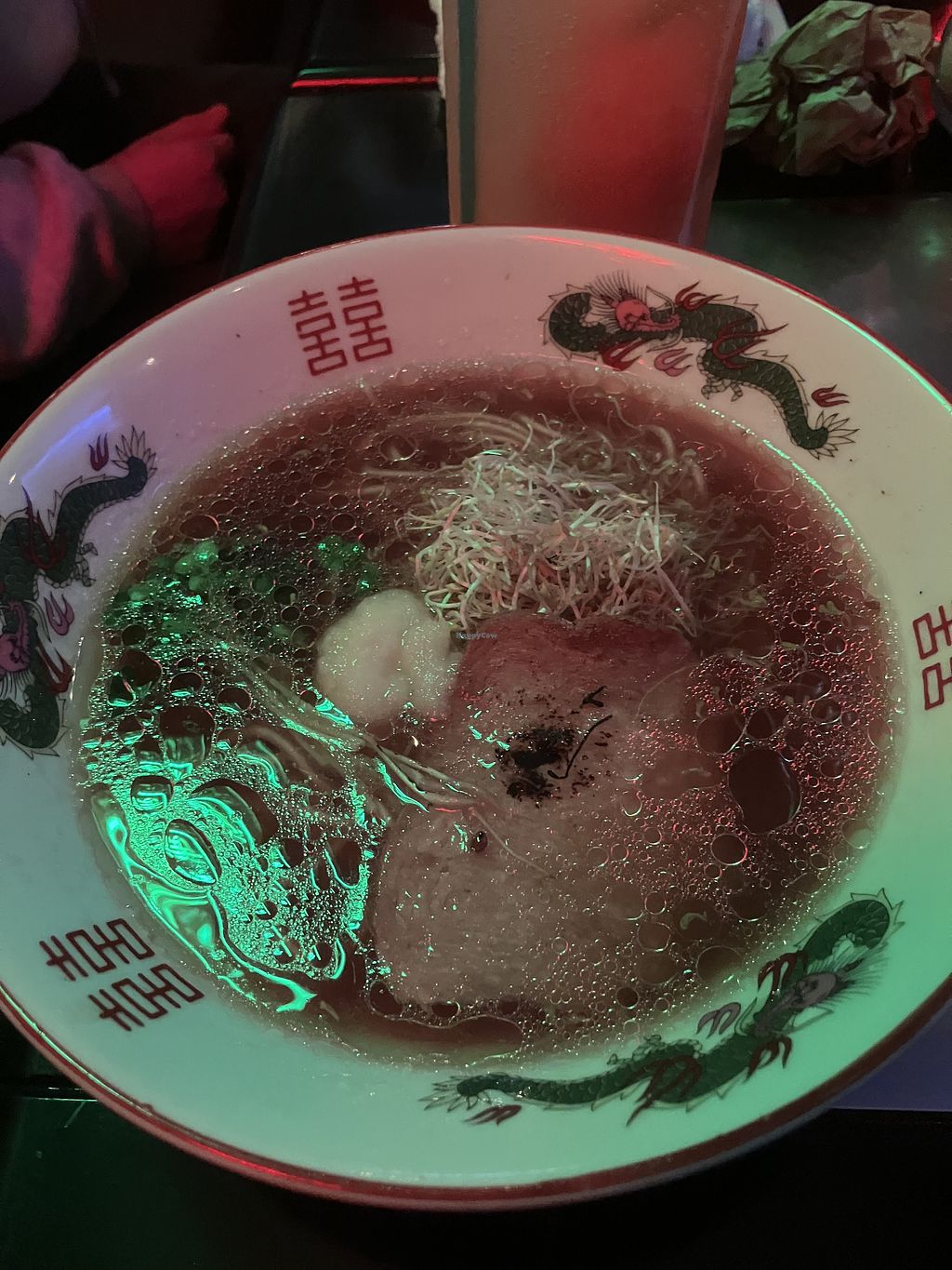 it was really nice to go to a bar in a cool area with an almost entirely vegan menu. this is not a bright and fruity and fresh and green vegan restaurant made for Instagram. it's pretty grungy and can be loud, but that adds to the atmosphere. I brought my non-vegan friends here on their first night and they would NOT shut up about the ramen the entire trip. it's worth noting that they do stop serving food at a certain time, even if they're open for drinks late, which Google might not list.