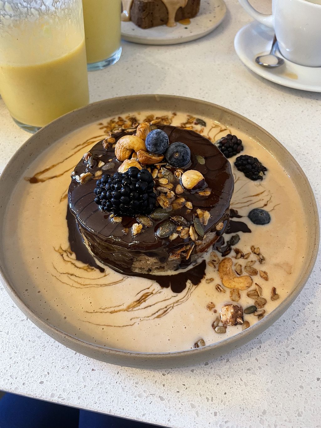 I like this type of place, healthy vibes and focusing on whole foods. Even though it's omnivore, labels are clearly indicated next to each meal, which makes it easy to order. Savoury dishes are a bit limited but I really enjoyed the simple sweet potato wedges with guacamole. The highlight was definitely the pancakes... They were just incredible and I enjoyed every bite of it. Next time I have the occasion to go back, I would go just for them!