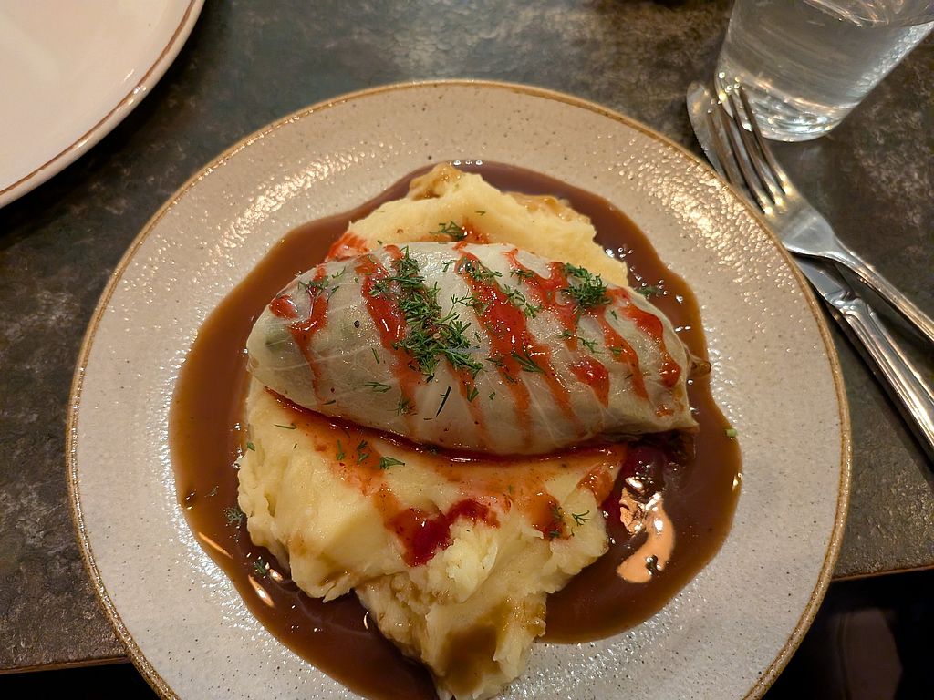 Fully vegan place with lots of options for lunch and dinner and desserts. I had the lasagne with a side of tofu and a Chai latte with Oatly milk and Berry Cheesecake. Relaxed atmosphere, lots of other people sitting solo so didn’t feel weird.