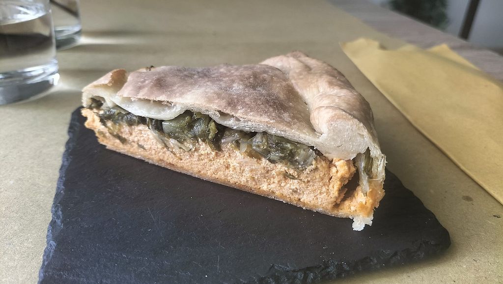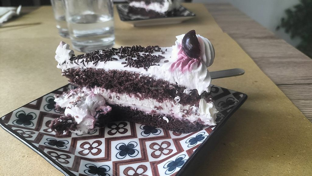 We stopped to try this 100% plant-based restaurant in a residential area of Turin and were pleased. The place is small and informal, with long opening hours. The staff was friendly and accommodating to some special requests (I asked for reduced salt). The menu isn't overly extensive and seems to change regularly. The portions are right, and the food was good. Without a doubt, the pastry shop is the highlight of this place. We tried a truly exceptional "Black Forest" cake, as well as a pistachio biscuit with fresh, fragrant pastry. Prices are average. Only the aggregate total is added to the final bill, so it's difficult to split with friends and verify the accuracy of the bill.
