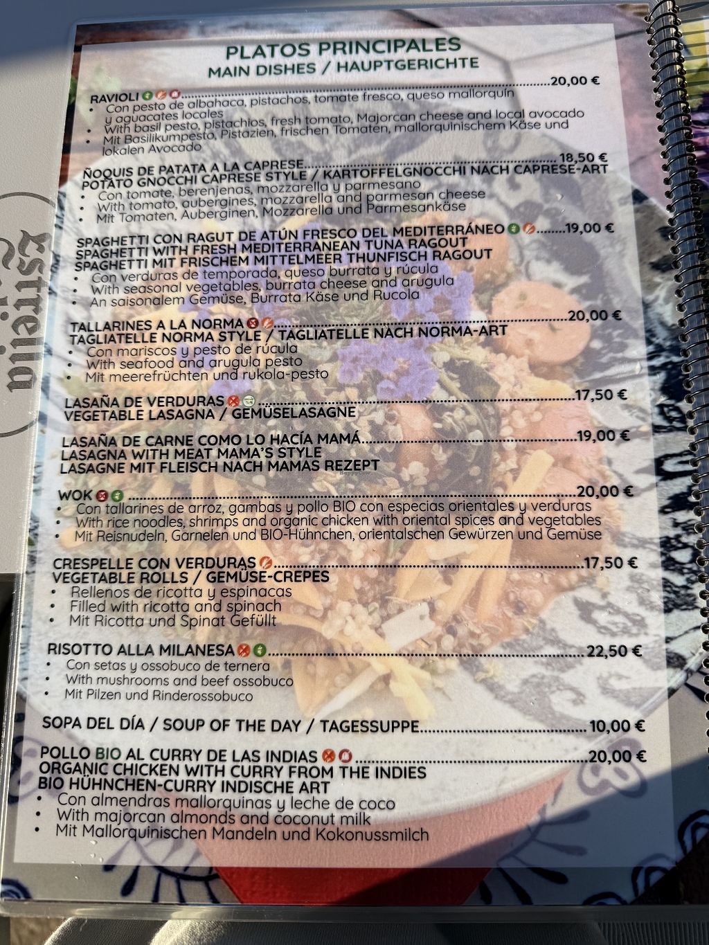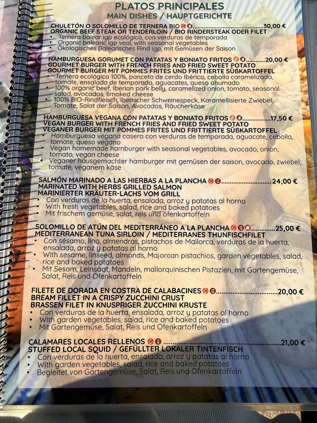 We knew they had a lot of vegan and gluten-free options, which made us sooo excited to dine here. We are a group of 4 with a Celiac and a Vegan (me), so eating out has not been the easiest in majorca. The starters were fine and all vegan. For the main dish, I ordered the vegan lasagna. It was buried in what I think was a vegan cheese that was covering everything, and it was difficult to see or taste anything else. but after a few bites where I really tried to go past the fact that it was not up to the expected standard (I'm also italian so I may be too demanding), I had to stop eating it because something was definitely not right with the flavor. My husband, who is a chef, tasted it and said it was not right, and we had to send it back. I ate the dise dish of my friend instead. They were very nice about it and did not charge us for the lasagna, and they brought out desserts for all of us (all vegan and one of them even gluten-free so my friend could have it). The rest of the main dishes were okay, so it might have just been a fluke for the lasagna!