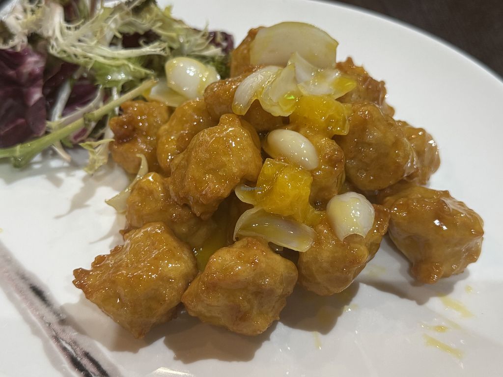 We had the sweet and sour 'pork' balls and sea spicy aubergine with veggie duck; they were both great dishes! Less oily than other restaurants, reasonably priced and friendly service