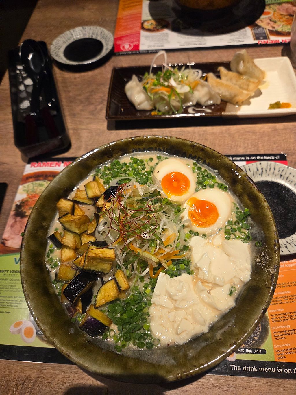 I got the Zesty Vegan Ramen and it was to die for. Absolute must have for vegans in Osaka. Really creamy with some spice.