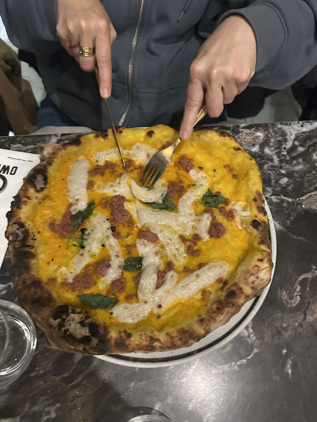 Rinnovo la mia recensione positiva: La pizza è molto buona e i prodotti sono freschi. Prima c’era un’intera sezione del menù chiaramente vegana con 3/4 opzioni che cambiavano a seconda della stagione. Anche tra gli antipasti c’era un’opzione vegana (in foto). L’Unica pecca era che tutte le pizze vegane erano a base di sole verdure. Per quanto fossero buone, speravo che il ristorante inserisse qualche ingrediente più innovativo come formaggio Veg. Adesso davvero ha fatto il salto di qualità: varie opzioni vegane innovative e molto saporite. La consiglio davvero a tutti! Tra l’altro, l’Impasto è buono e il personale cordialissimo😄