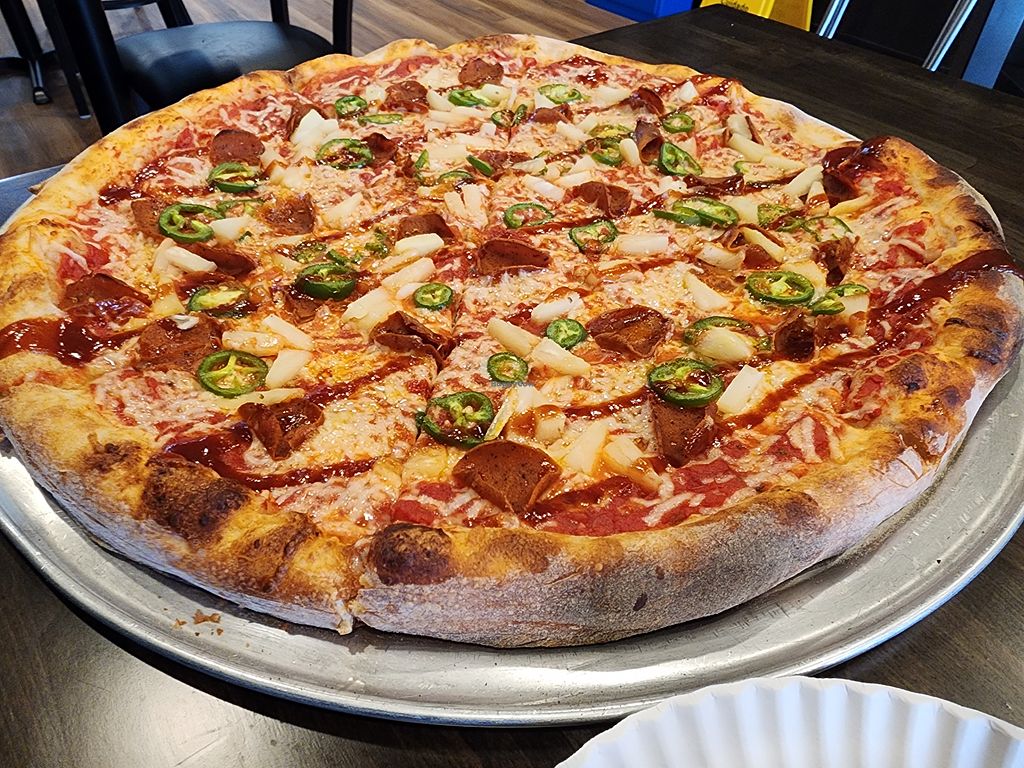 I’m from New York and this pizza is fantastic- dough itself is top notch, chewy, flavorful, and well risen . Then the toppings- oh! What combinations! We had a white pie, with garlic, chik’n, mozzarella, and a chili agave drizzle- wow! Still thinking about it the next day and wish we lived closer. Run, don’t walk, and support this wonderful vegan business