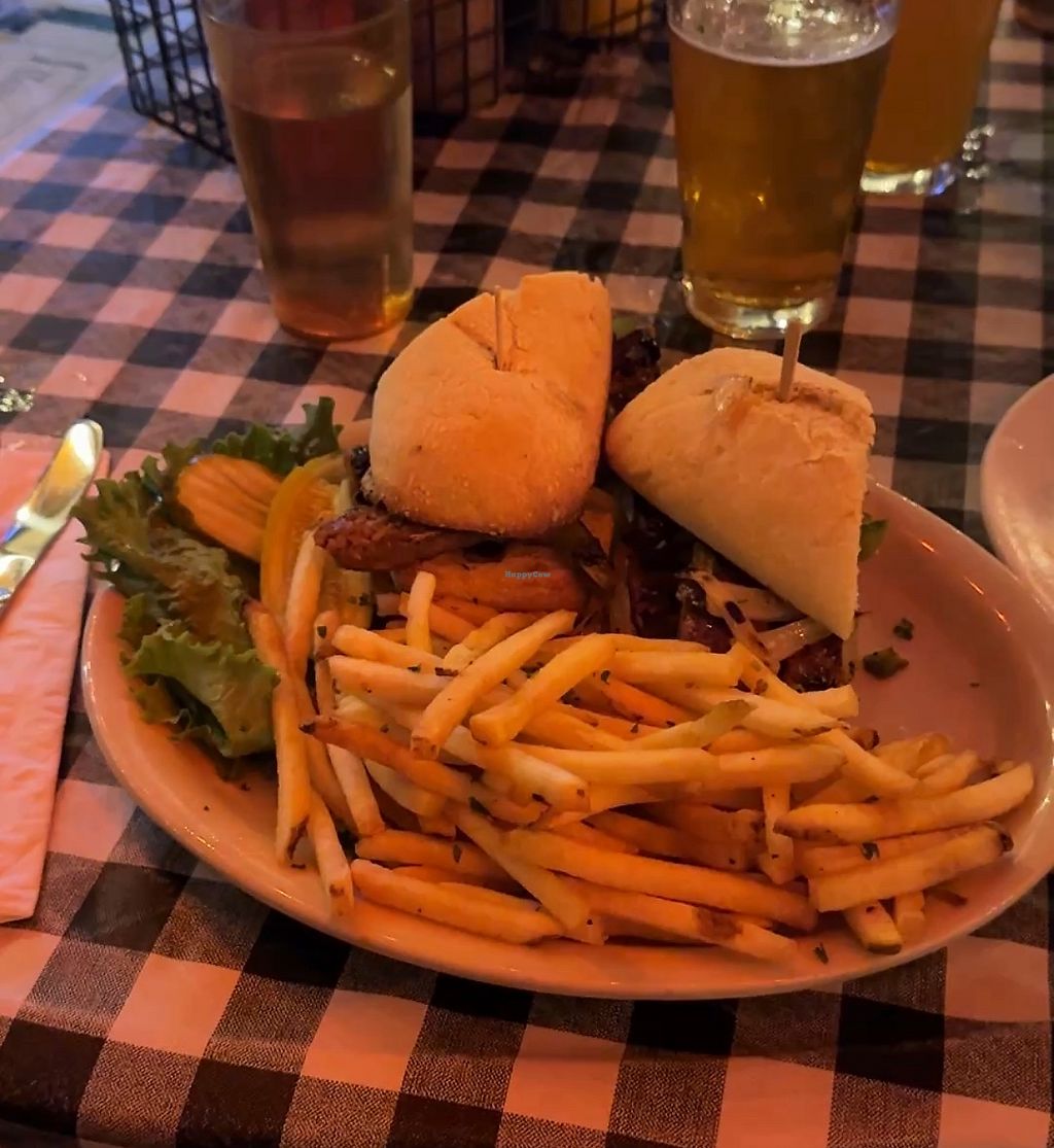 A fun Irish pub in the middle of Mendocino with a great Beyond Sausage sandwich. They also had a vegetarian wrap that looked to be vegan. Good selection of beers to tie the meal together. The fries use shared oil as the other foods fyi.