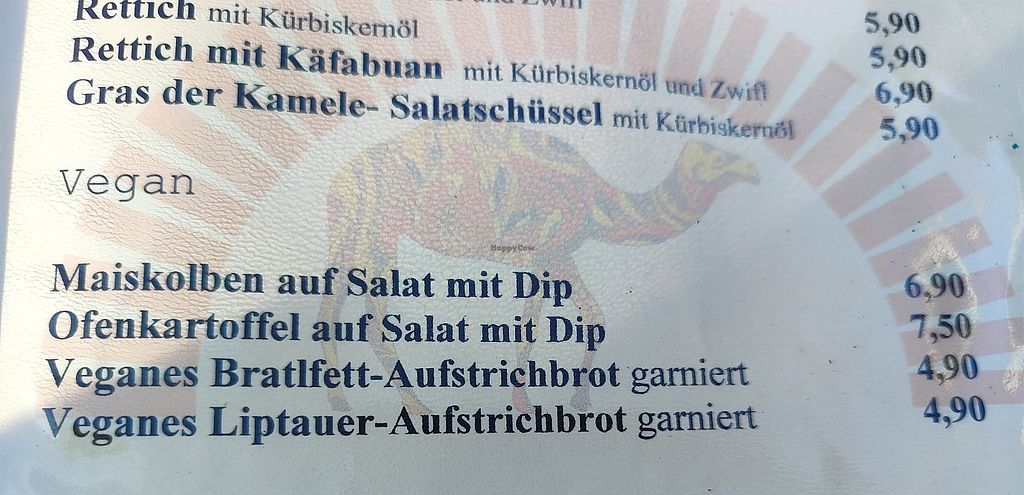 Serves meat, vegan options available. Traditional "Heuriger" (wine tavern) with some labeled vegan food options. Choices include two vegan sandwiches and roast potatoes with salad. Open Sat-Sun 09:00-22:00. Closed Mon - Fri.