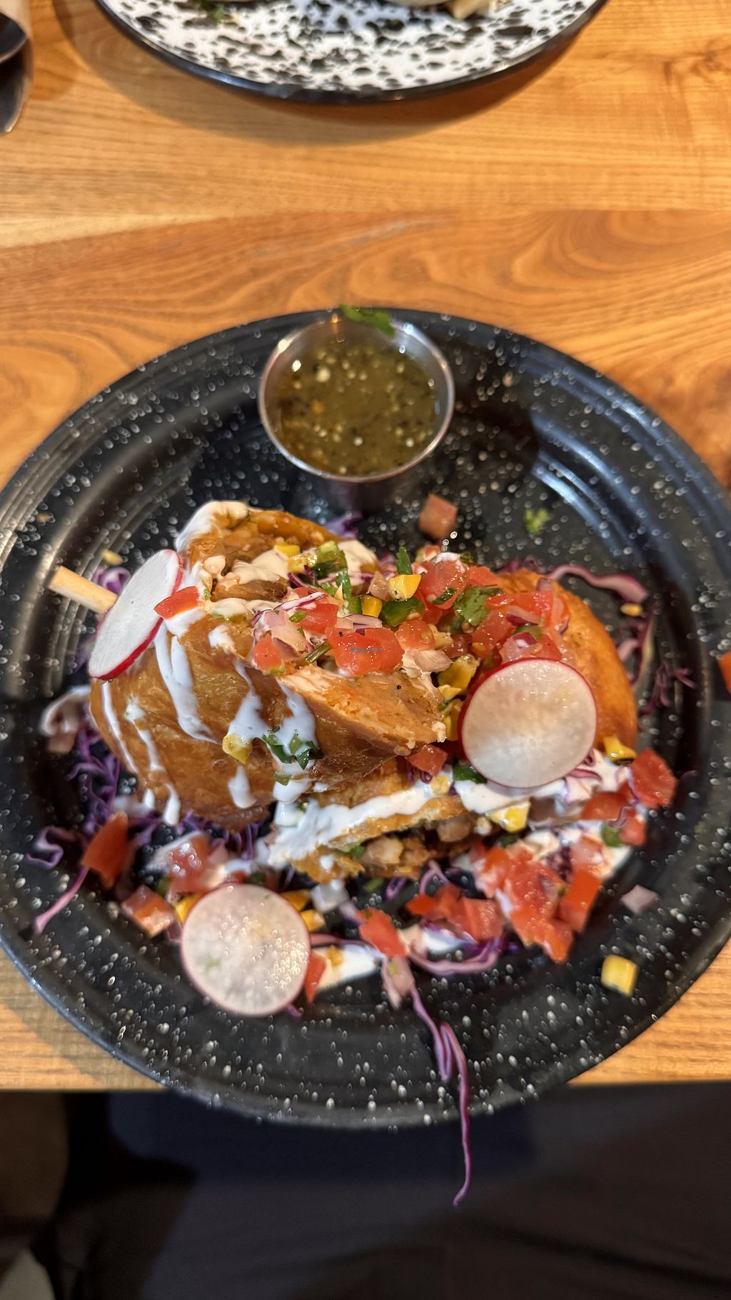 Exceptional vegan Mexican restaurant. My friend and I got the quesabirrias and a taco dinner and it was all delicious. Tacos were quite filled to the top, which I appreciated because they were so good! Staff is friendly and will help you order if you’re unsure.