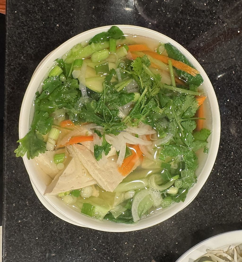 Pho Minh is a tiny shop in Pacific Beach with only a few tables. There is a vegetarian section of the menu, and it offers a couple of options that are vegan or easily veganizable. I ordered the pho, and it was really good! It was loaded with veggies, the broth was tasty, and for San Diego, it was affordable. The service was fast, and they have a small parking lot, which made it nice to not have to search for parking in the area on a Saturday night.