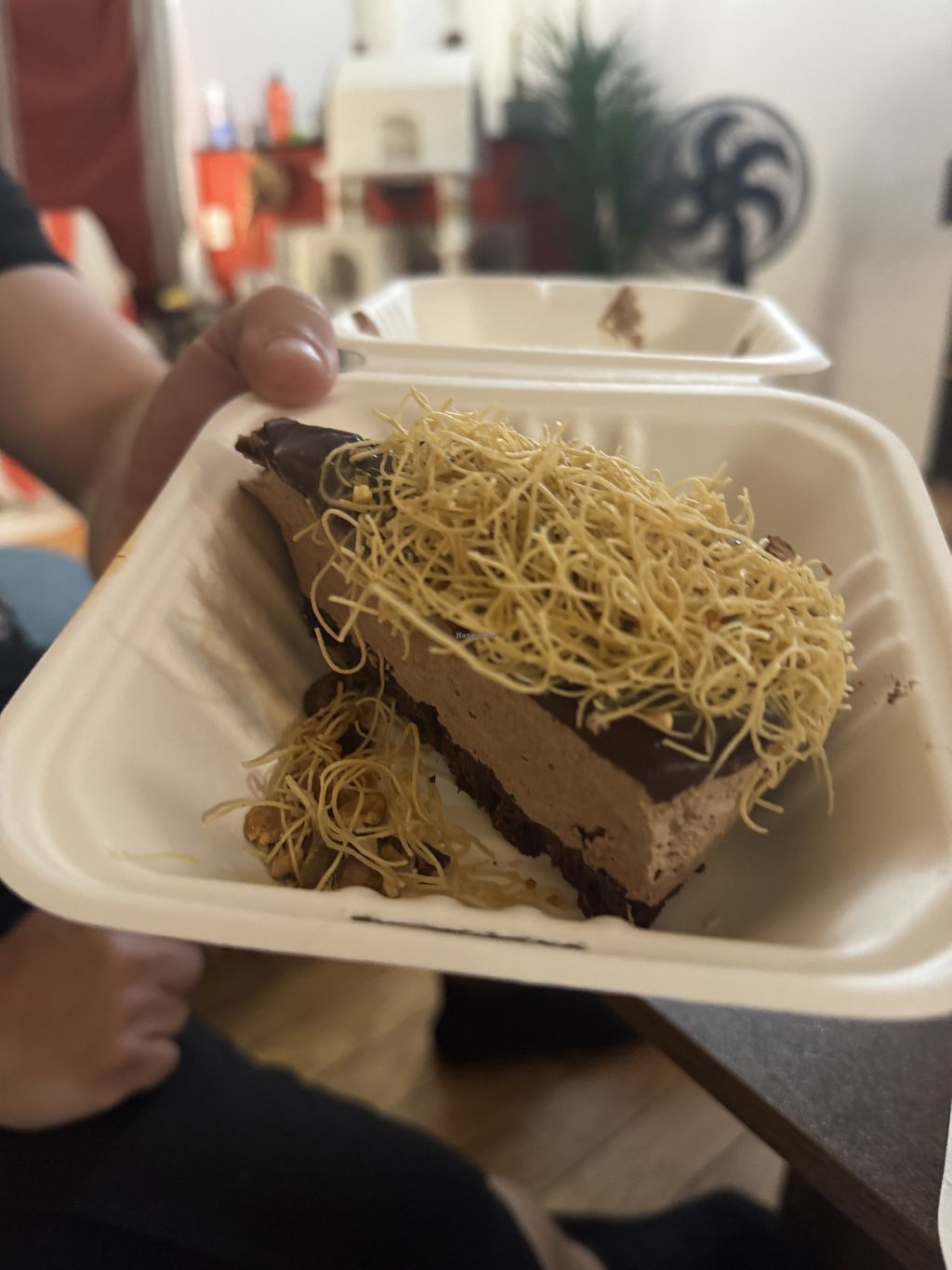 Man kann sich seine Pizza selber belegen, es gibt eine vegane Käsealternative im Angebot.