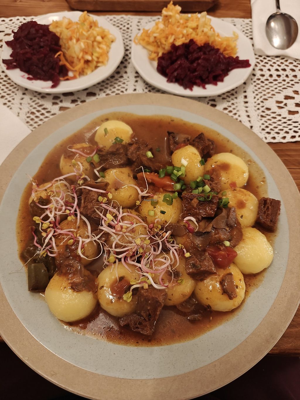 Read morethe gulash "meat" was made with seitan and it tastes and looks like it's real ones. service was also great!