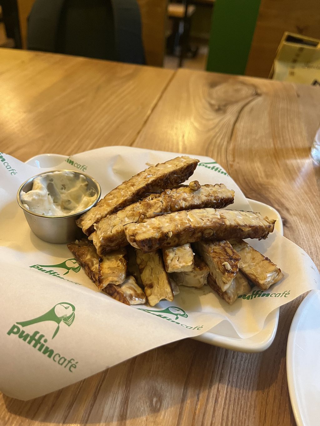 Love their pesto avocado tempeh salad and the grilled tempeh with peanut sauce. I wish they had vegan cheese and pizzas and more deserts selection, as currently they only have bfast bowls or sweet wraps for dessert.