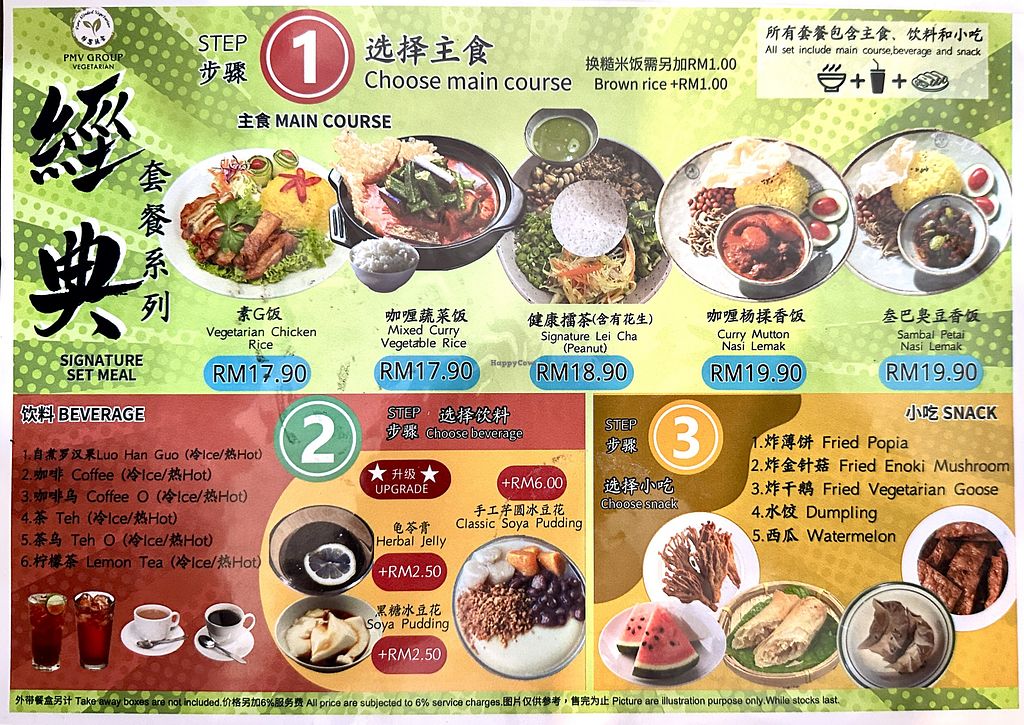 A rather modest vegetarian restaurant with an extensive selection of dishes and dining options - ala carte, set meals, buffet and take away.