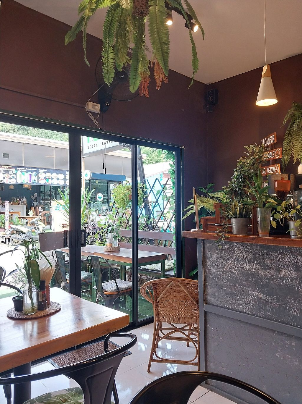 Vegan restaurant est. 2016 - this is its first of a few outlets in Thailand. Serves a large range of meals plus desserts, coffee, and drinks. Example of food include rice paper salad rolls, banana pancakes, nachos, quesadilla, burrito, mushroom larb, burger and potato wedges. May build-your-own salad as well. Previously at 10/120 Moo 1, Soi Ta-ied. Open Mon-Sat 9:30am-8:00pm.
