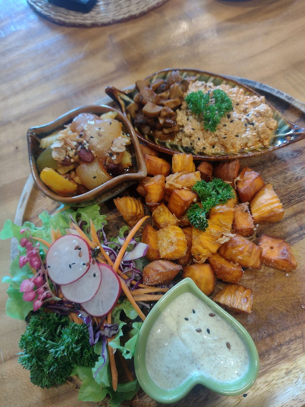 I came to Pure Vegan Heaven and ordered the breakfast dish with sweet potato, chili vegetables, mushroom tofu, a side salad and garlic and chia sauce. The sauce was absolutely delicious and easily one of the best things I have tasted since arriving in Thailand.