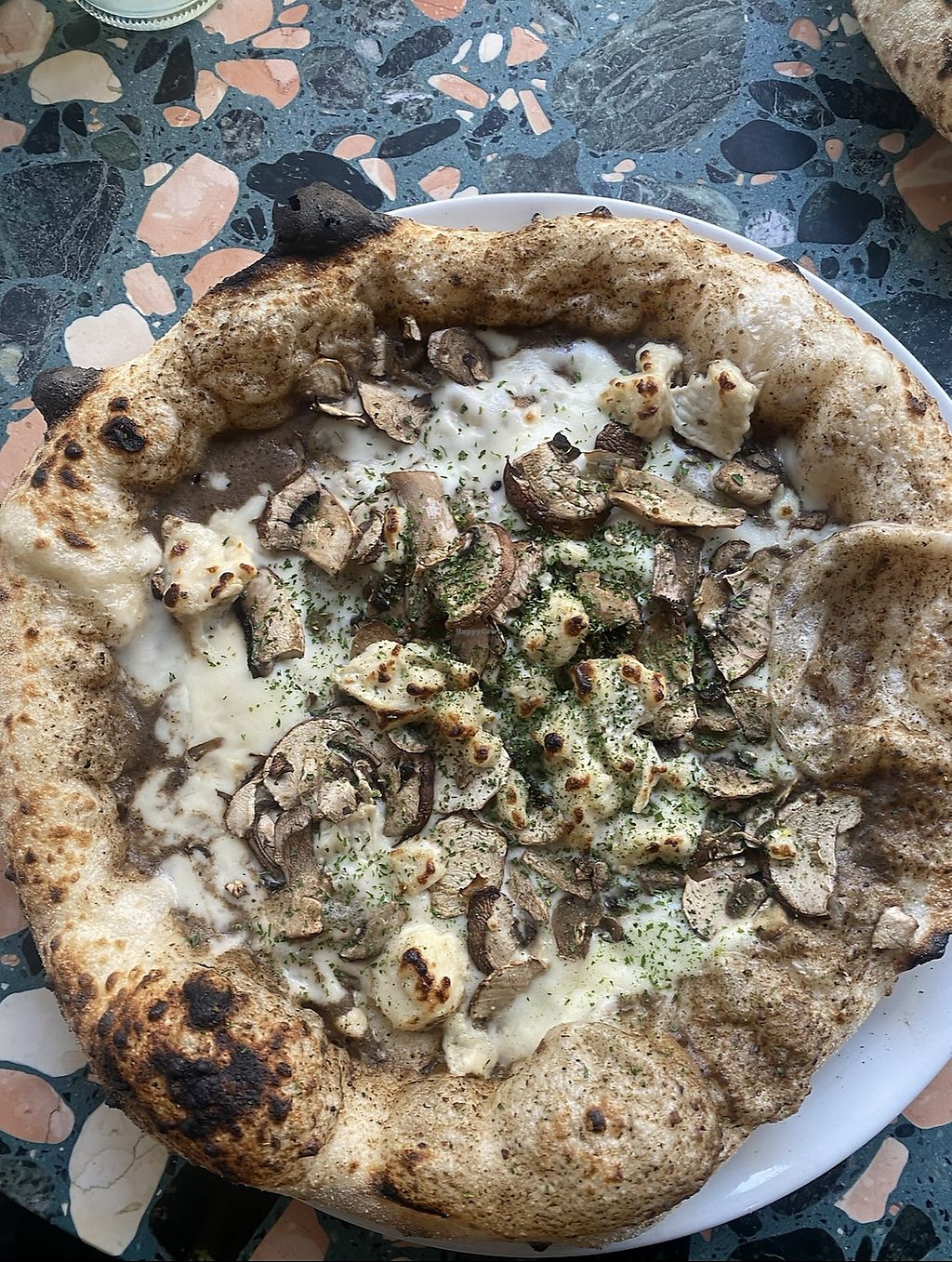 Some of the best vegan pizza I’ve ever had!! The Parmigiana was pure perfection (I added pepperoni), the Caesar salad was bright, complex, and perfect for sharing. My friend’s Black Truffle & Mushroom looked phenomenal, as well. For dessert, I had the Nutella Mince Pie Dough Balls…fluffy, flavorful, and truly unique! Highly recommend!!