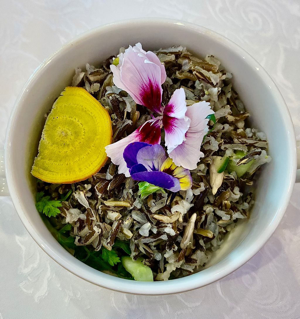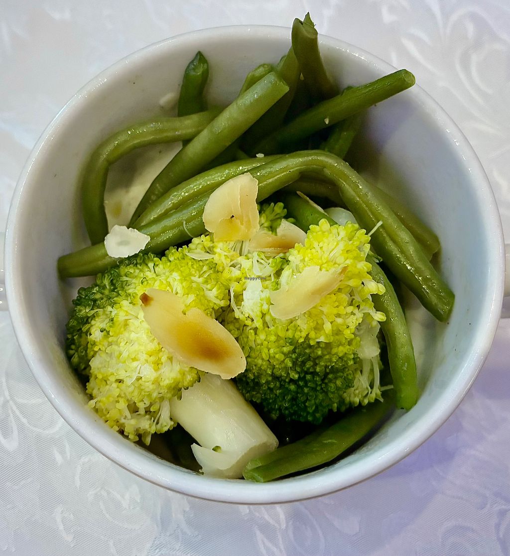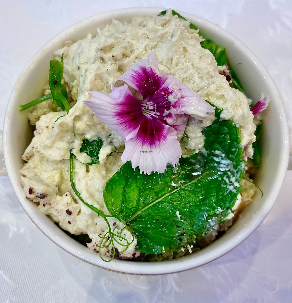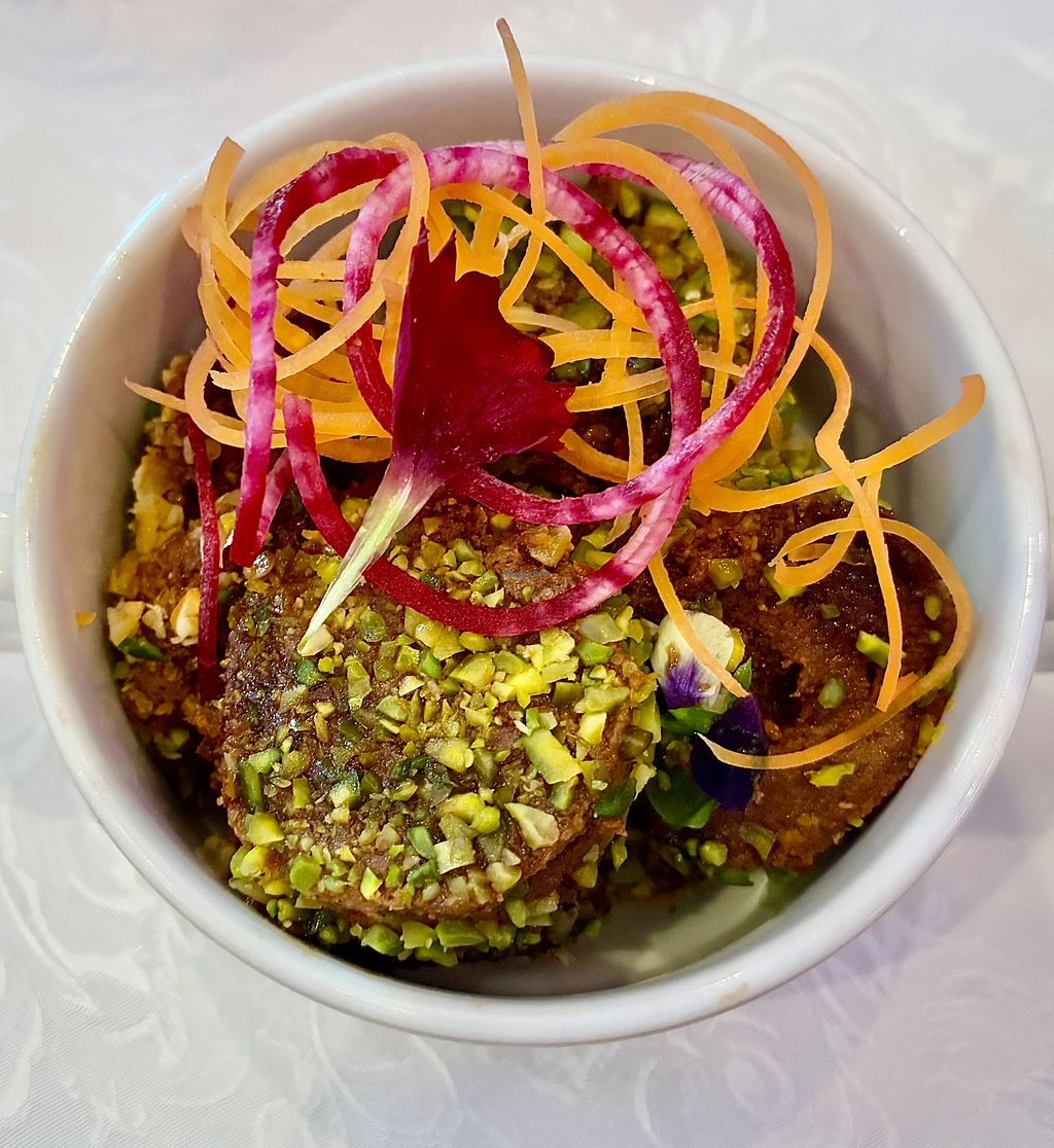 Serves meat, vegan options available. Special events and dining venue located in the ballroom of the Raffles Dubai, Wafi hotel. Vegan buffet items and allergens are clearly identified. Plant-based savory options include faux chicken nuggets, vegan meatballs, muhammara, vine leaves, and couscous. Sides such as mashed potatoes, roast potatoes, and a broad bean & white asparagus salad are available, alongside desserts like chocolate brownie and caramel pudding. Open for special occasions such as Christmas and New Year’s brunches.