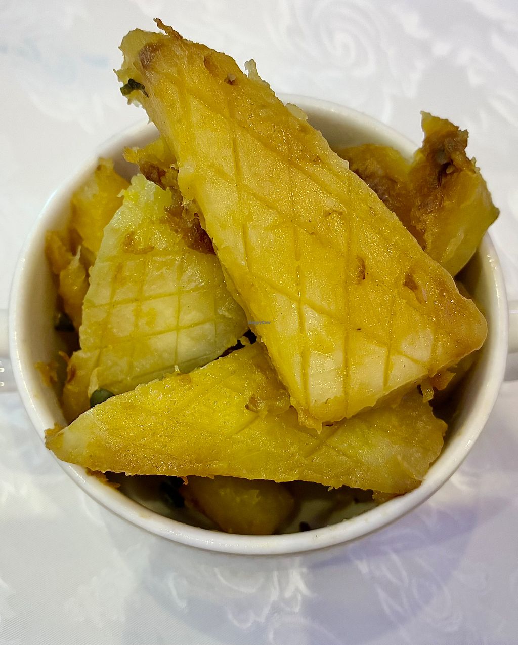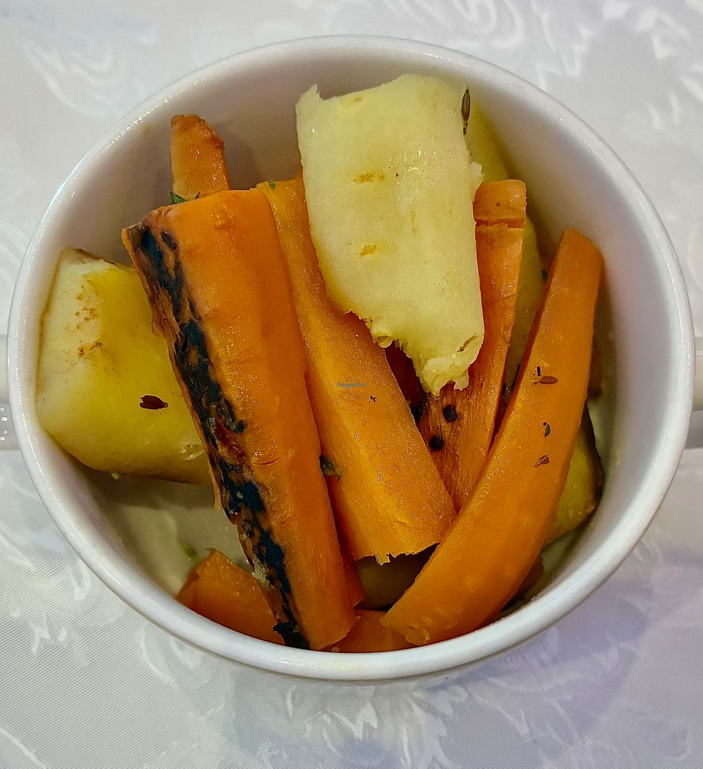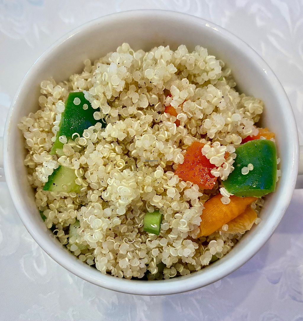 Serves meat, vegan options available. Special events and dining venue located in the ballroom of the Raffles Dubai, Wafi hotel. Vegan buffet items and allergens are clearly identified. Plant-based savory options include faux chicken nuggets, vegan meatballs, muhammara, vine leaves, and couscous. Sides such as mashed potatoes, roast potatoes, and a broad bean & white asparagus salad are available, alongside desserts like chocolate brownie and caramel pudding. Open for special occasions such as Christmas and New Year’s brunches.