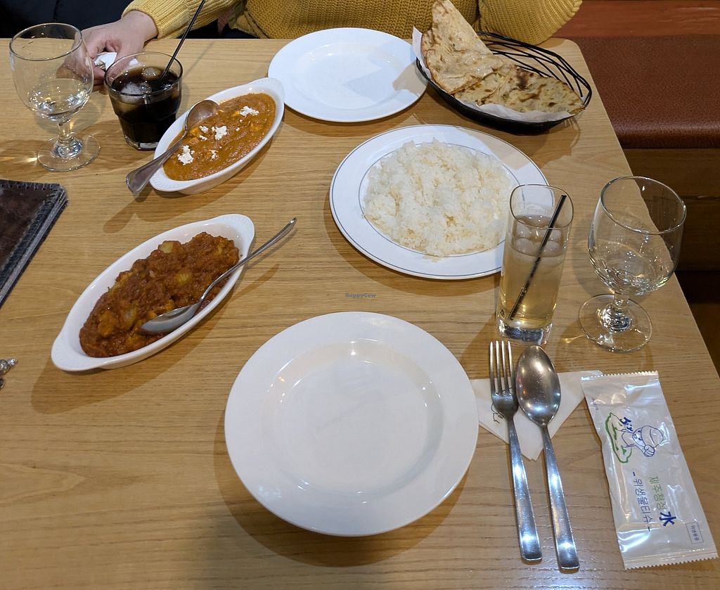 this place was a great find on our first night in jeju! we stayed in a hotel never nearby, and were happy to have a restaurant within walking distance that offered vegan options. we were able to order a variety of dishes off of the menu (samosas, channa masala, aloo gobi, salad...). all of the dishes were delicious and reasonably priced. the restaurant also has a nice atmosphere and friendly staff. would definitely return!