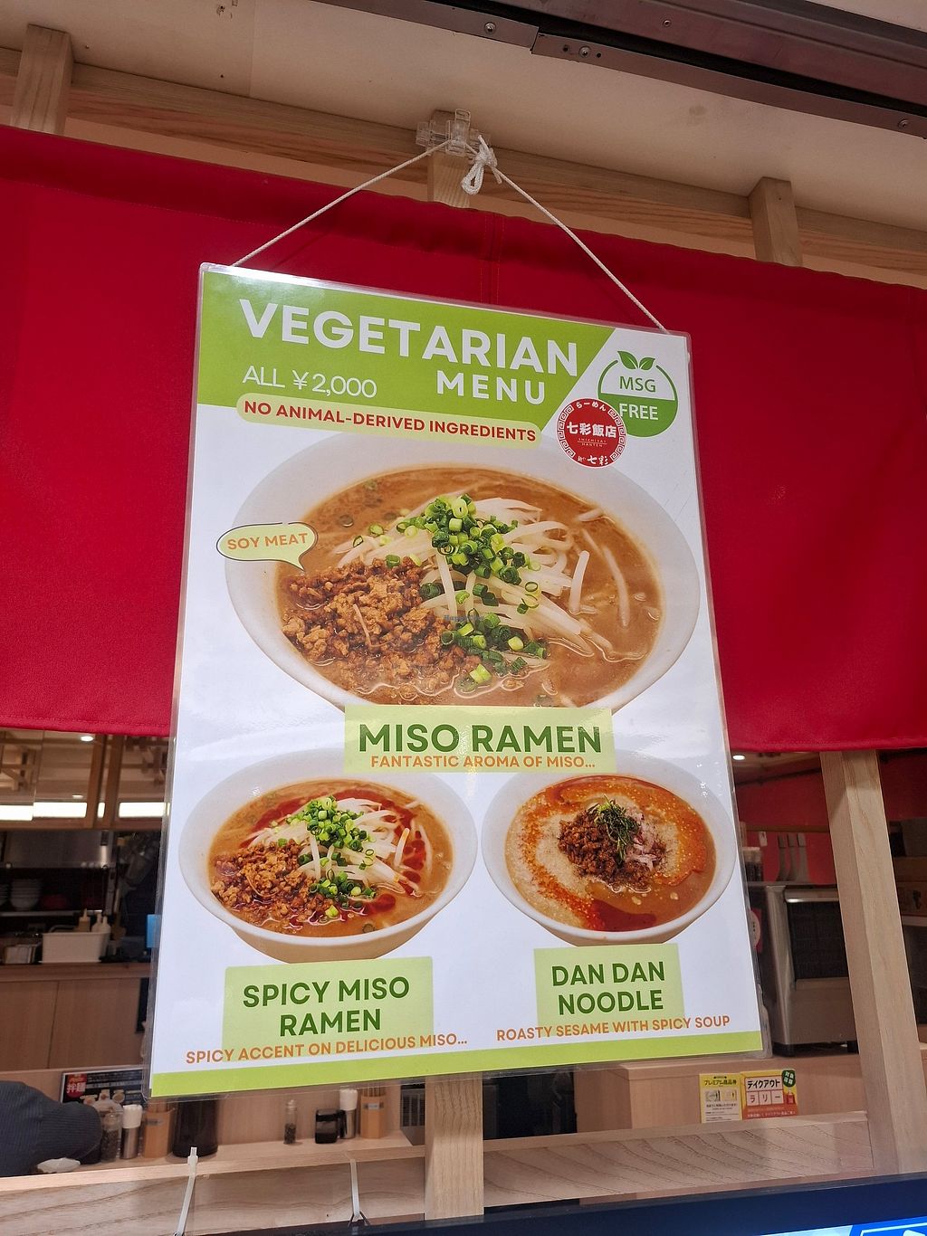We tried the the dandan and the spicy miso ramen. It was good, and quite spicy. A bit on the pricier side. Vegan/vegetarian option clearly labeled. Use a translator when ordering.