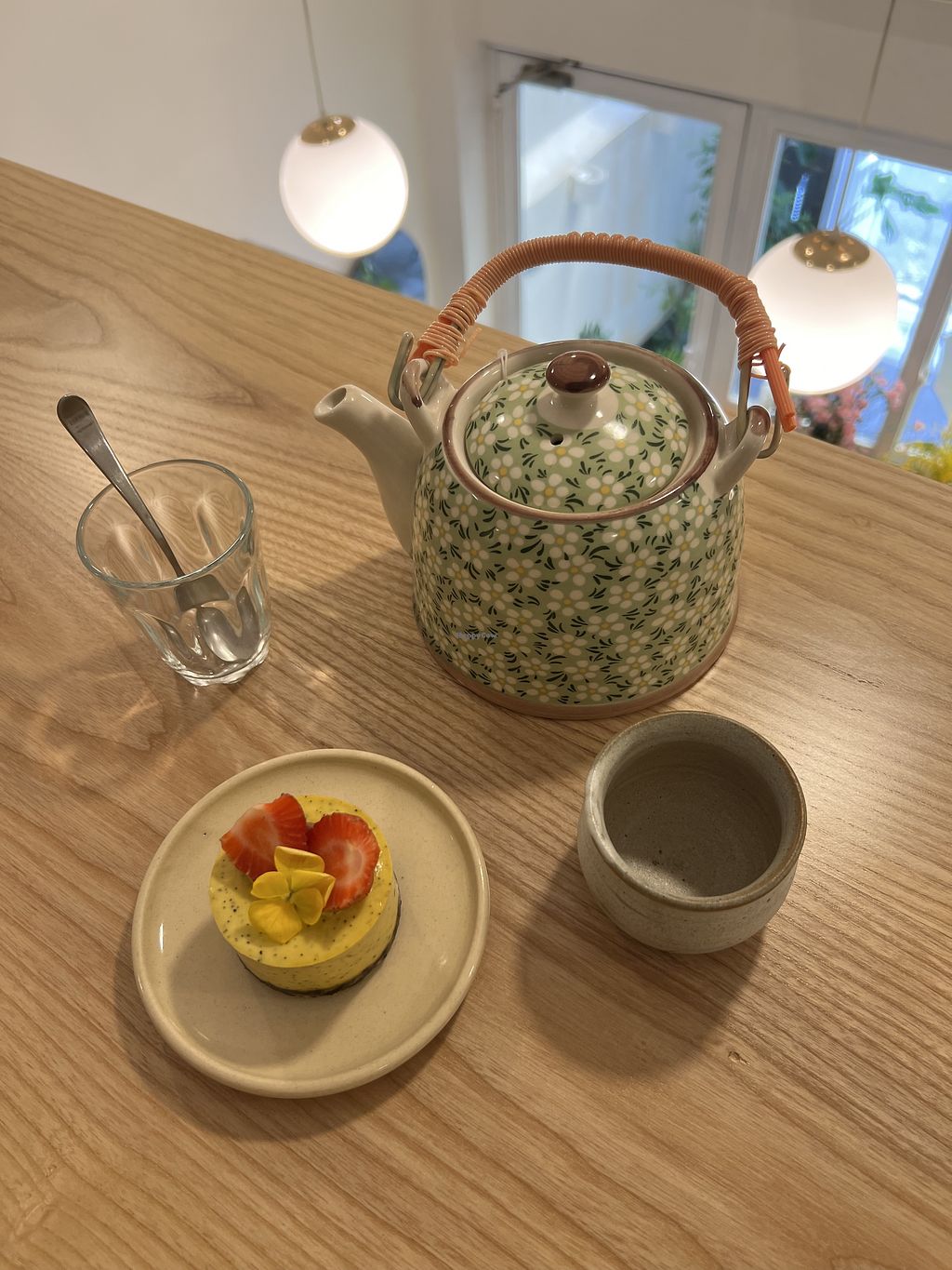 We sat upstairs where they have made great use of the small space. It is a cute and relaxed setting. We had the strawberry vanilla cheesecake and the lemon and raspberry cake and both were delicious. The service was friendly and they spoke great English. We were given a glass of water each with our food which was a nice touch. Highly recommend.